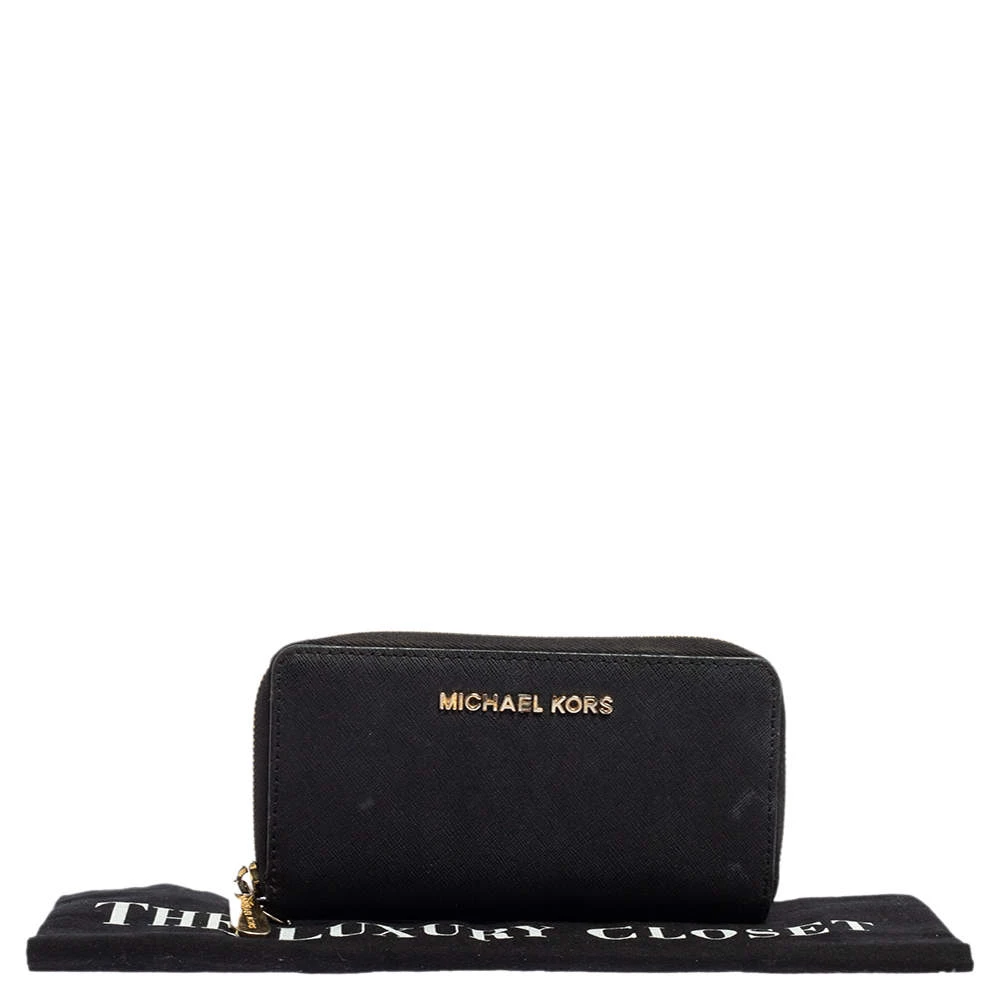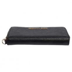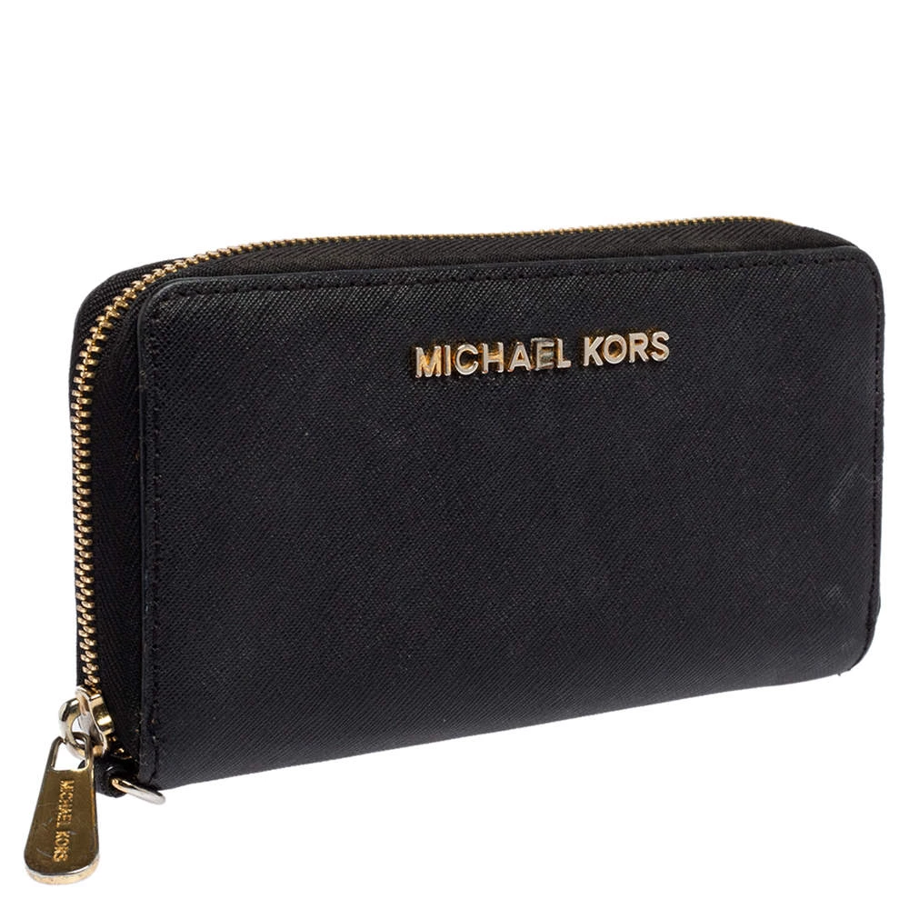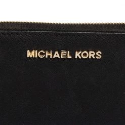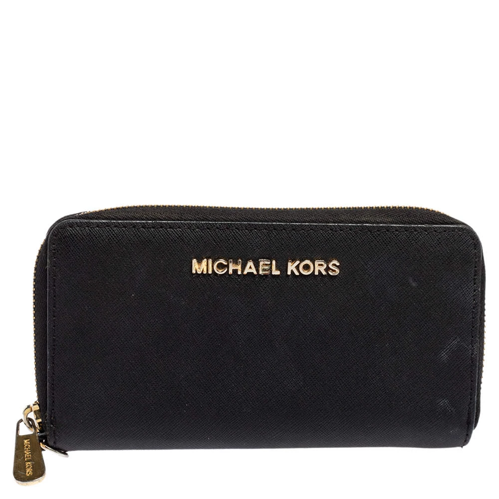 Give your cash and cards a stylish home with this magnificent wallet from the house of Michael Kors. Designed to perfection and crafted from fine quality leather, this wallet can be your go-to accessory. Featuring a classic black shade and a gold-tone brand logo detailing on the front, this creation is trendy and incredibly stylish.