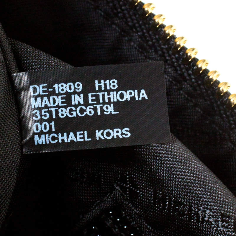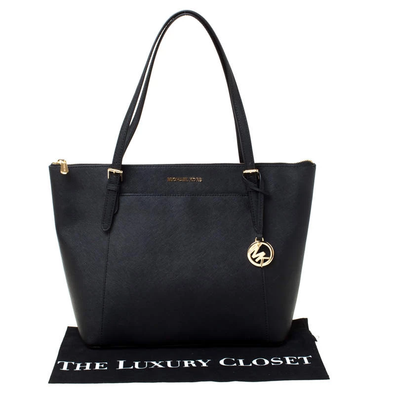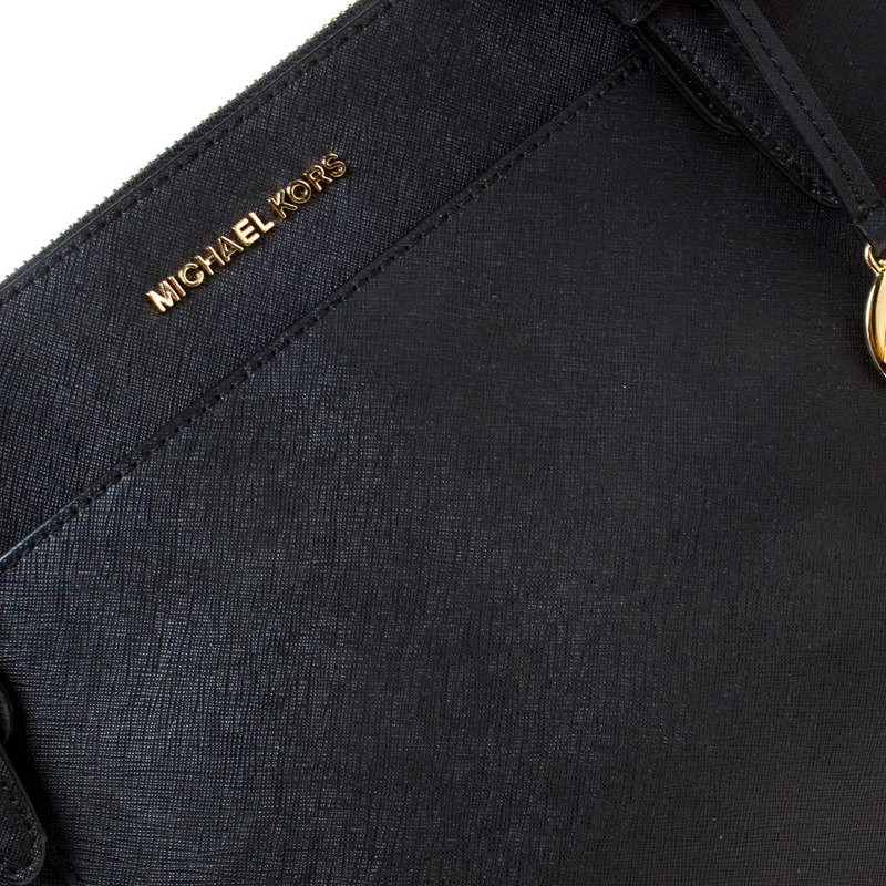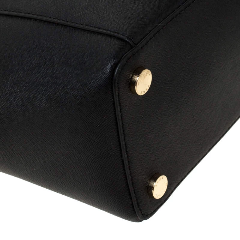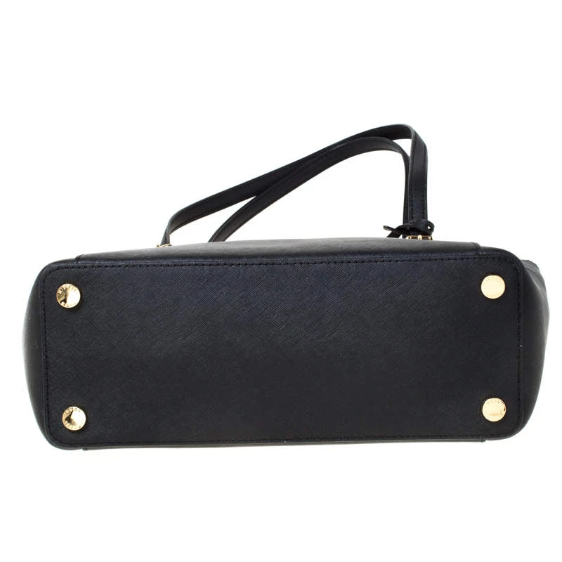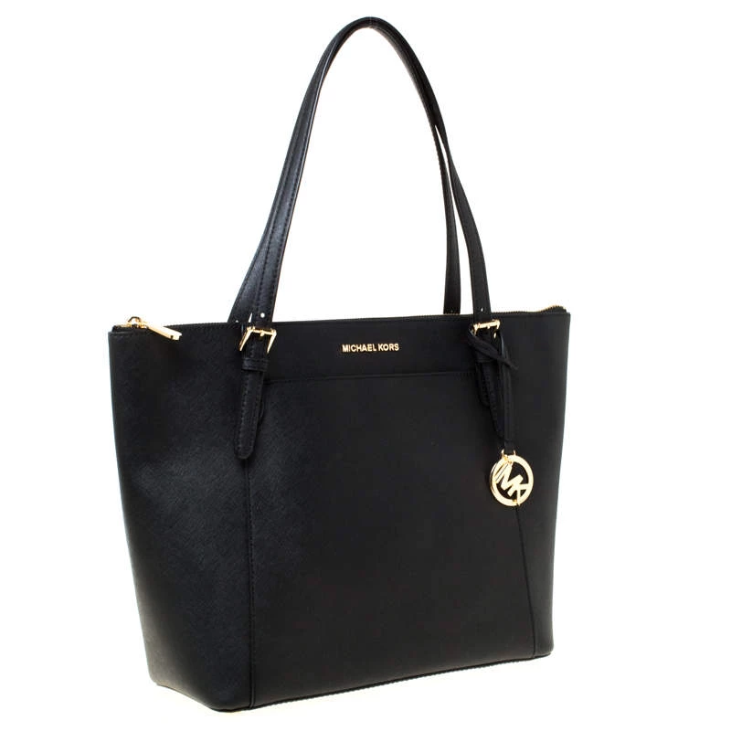 Stylish and handy, this Michael Kors Caira tote is crafted from leather. The bag comes with dual handles with an attached MK charm and protective metal feet at the bottom. The zip top closure opens to a nylon-lined interior that houses slip pockets and a zip pocket.