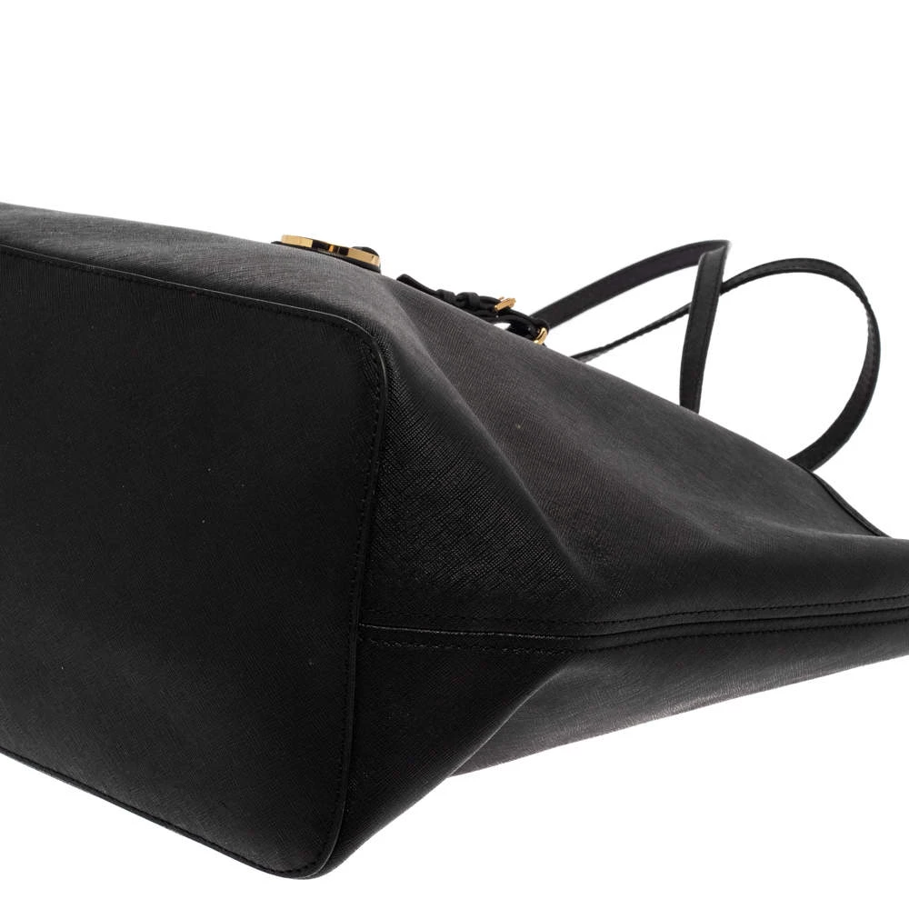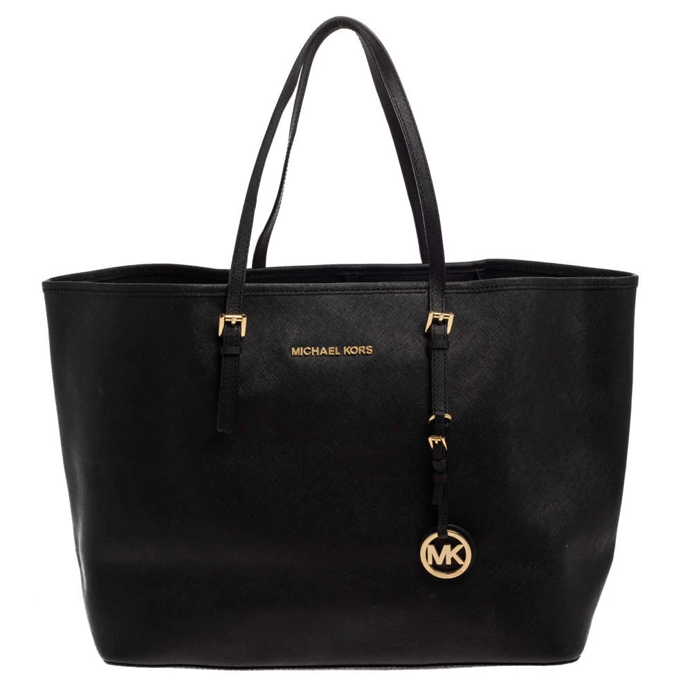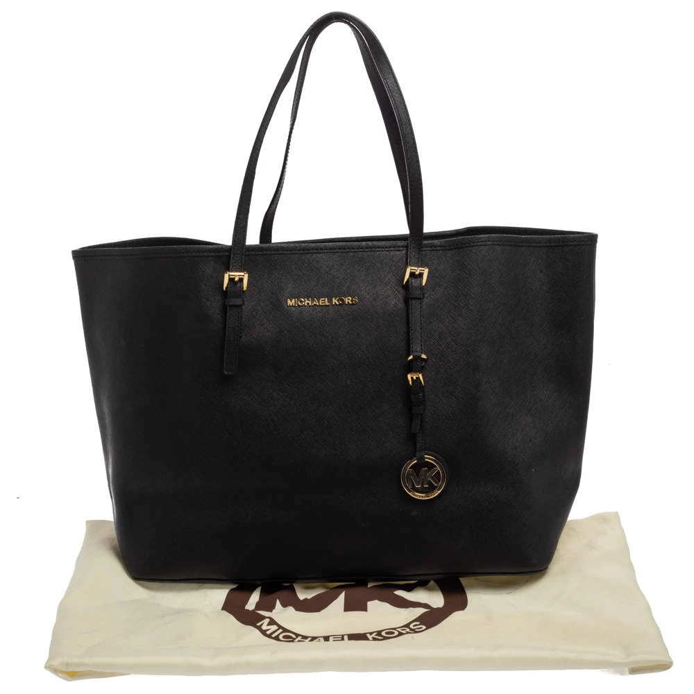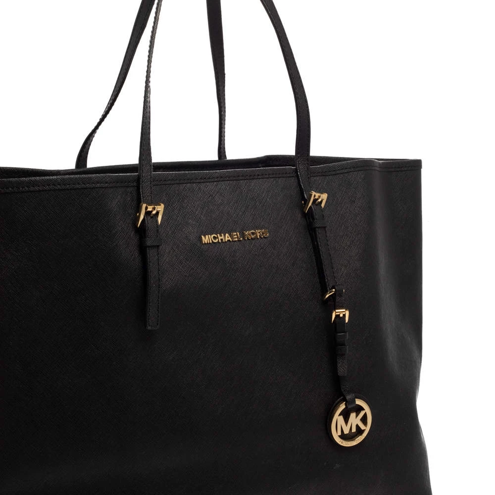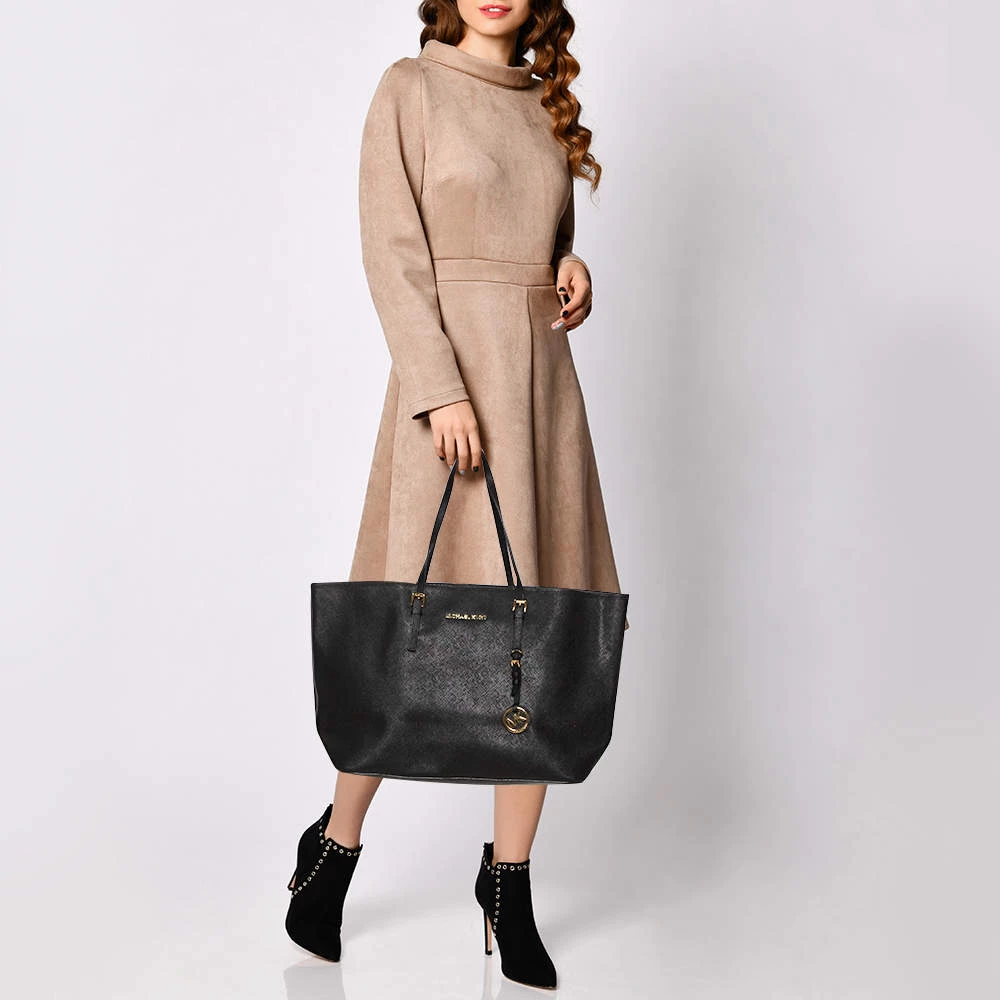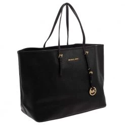 Timelessly elegant and stylish, Michael Kors collections capture the effortless, nonchalant finesse of the modern woman. Crafted from leather in a black hue, this chic Jet Set tote features a spacious interior with a top zip fastening. The sleek, understated silhouette is punctuated with gold-tone hardware.