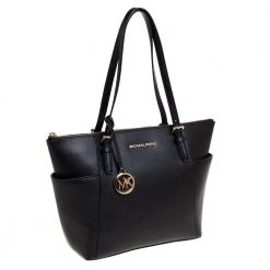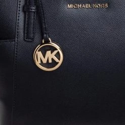Timelessly elegant and stylish, Michael Kors’s collections capture the effortless, nonchalant finesse of the modern woman. Crafted from leather in a black hue, this chic Jet Set tote features a spacious interior with a top zip fastening. The sleek, understated silhouette is punctuated with gold-tone hardware and an MK medallion.