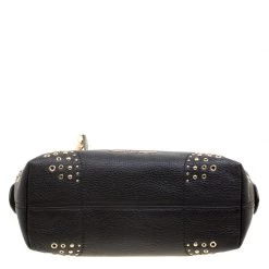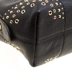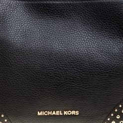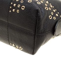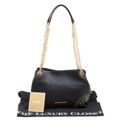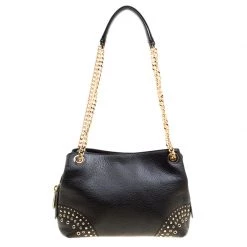 This lovely shoulder bag from Michael Kors is a creation meant to assist you with style and ease. It comes crafted from black leather and is styled with gold stud detailing on the front and back edges. Two chain-link shoulder straps with leather shoulder rest are provided for you to carry it, and a spacious fabric interior is to house your belongings.