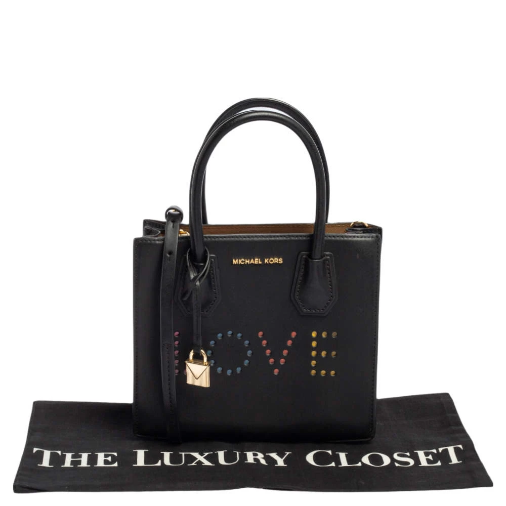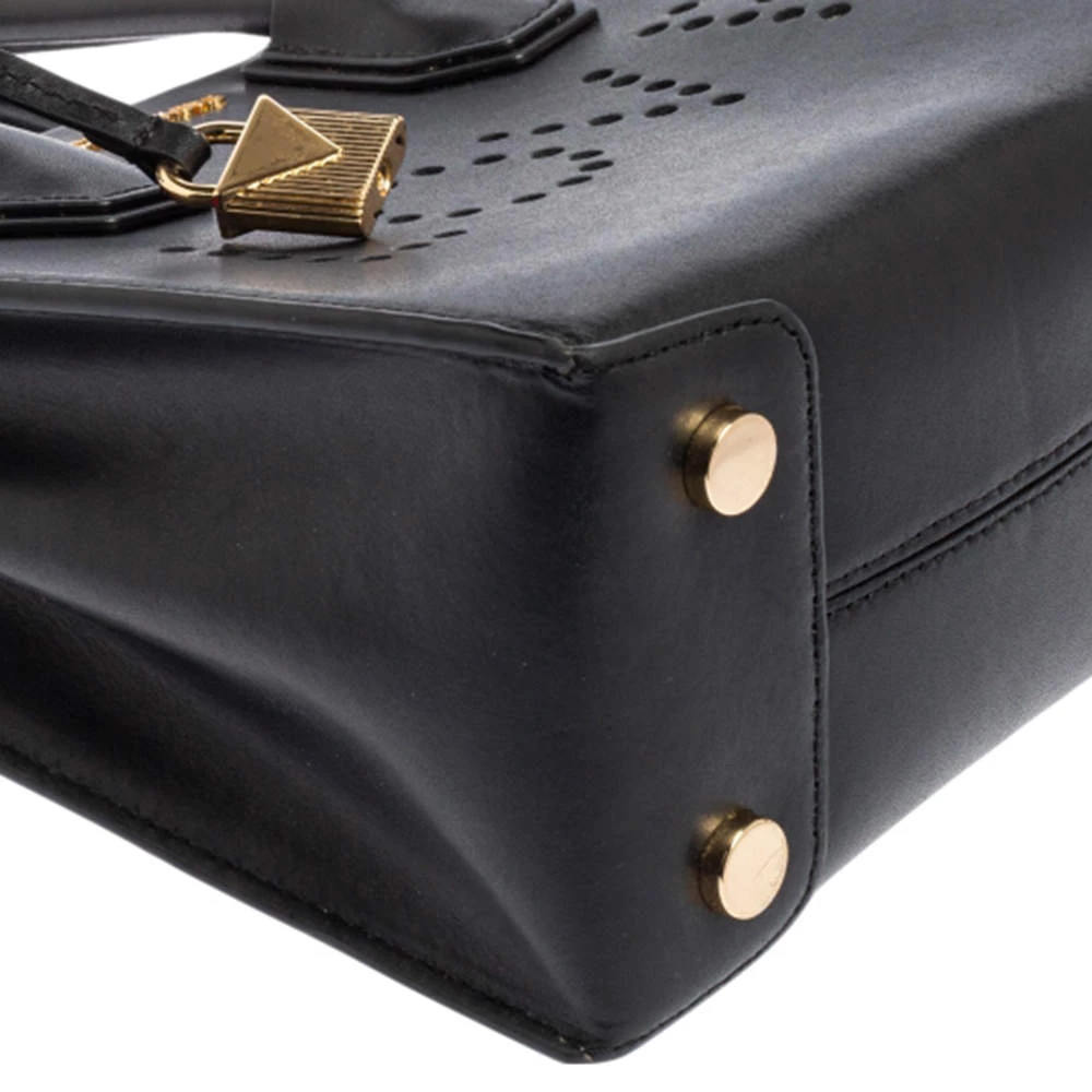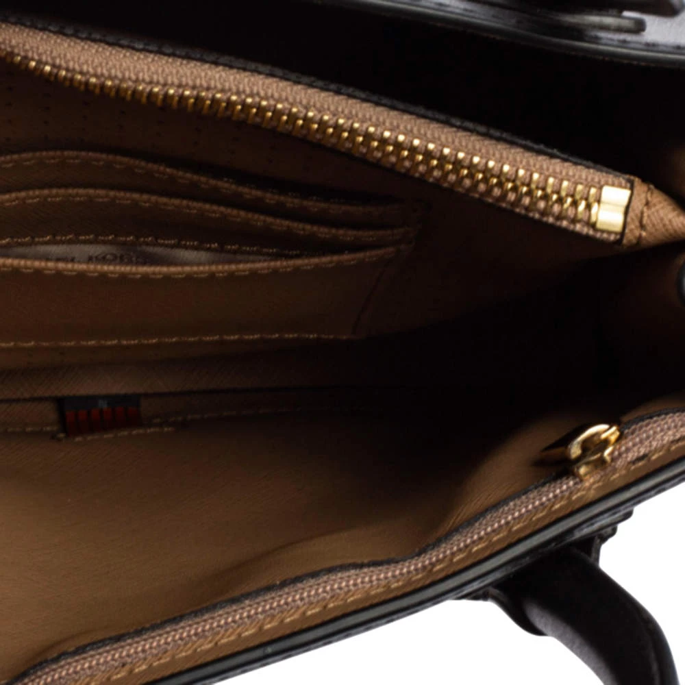 Featuring a chic and fabulous style, this Michael Kors tote is modern. Crafted from leather in stunning black, the tote features dual handles, a removable shoulder strap, and a padlock. It opens to a spacious leather interior divided by a zipped compartment. The tote comes with protective metal feet and you are sure to love swinging this beauty.