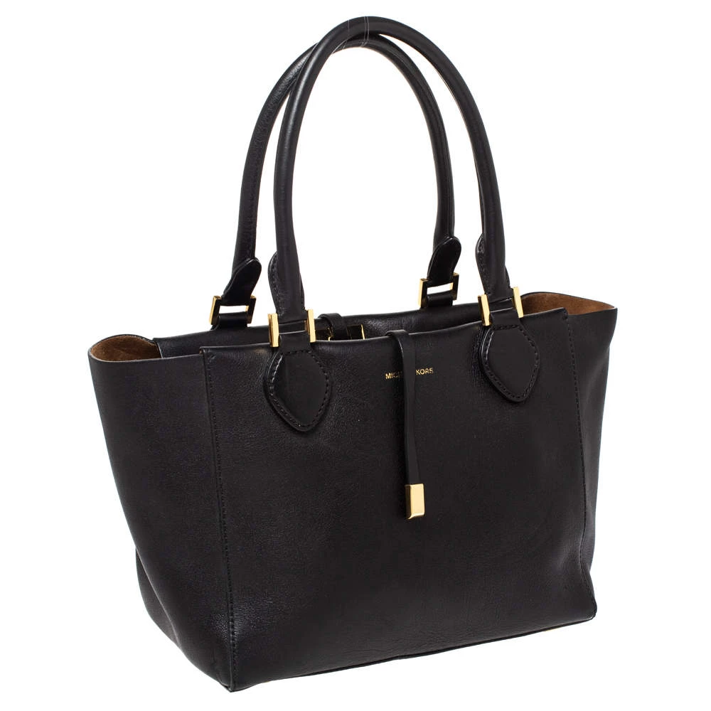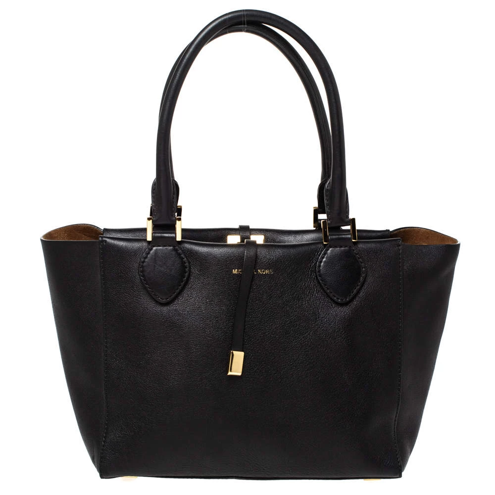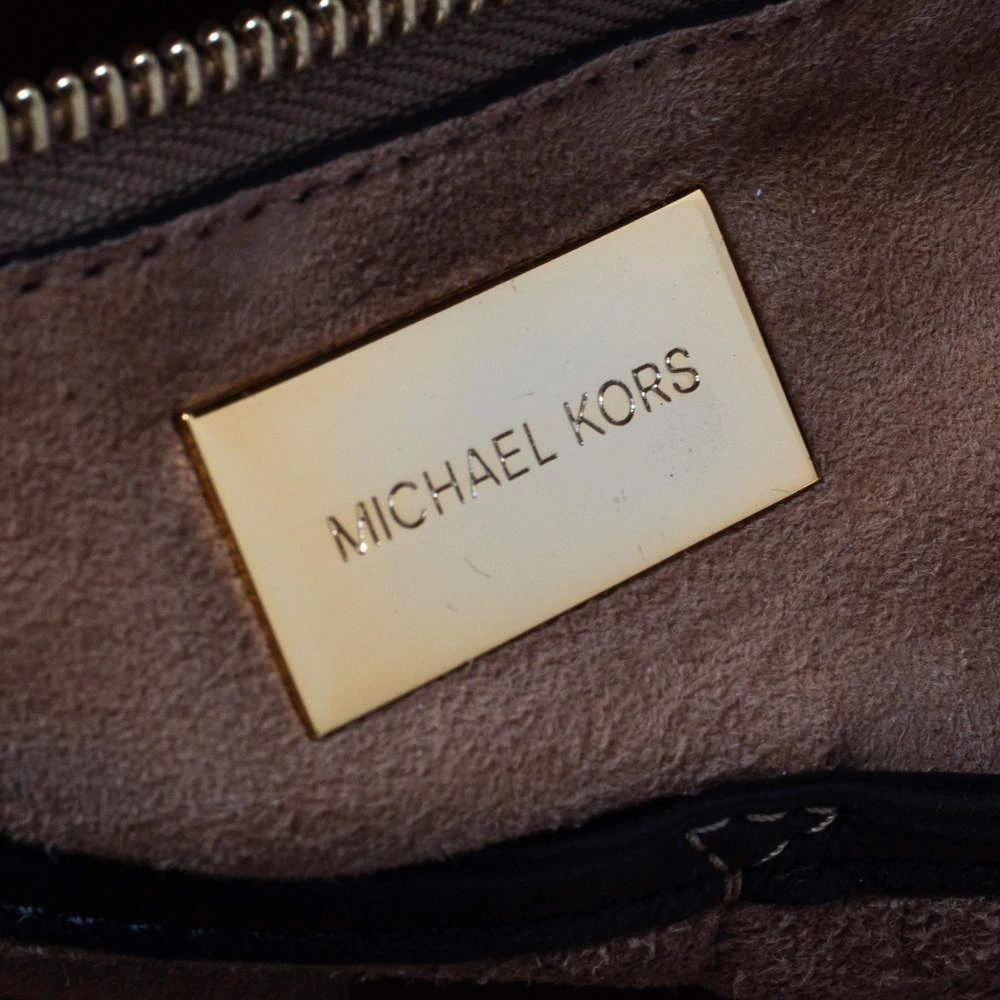 This Miranda tote is from Michael Kors. It has been crafted from quality leather in a splendid black and detailed with gold-tone hardware. The bag has a spacious suede interior and is held by two top handles. This creation is ideal for the fashionable you.