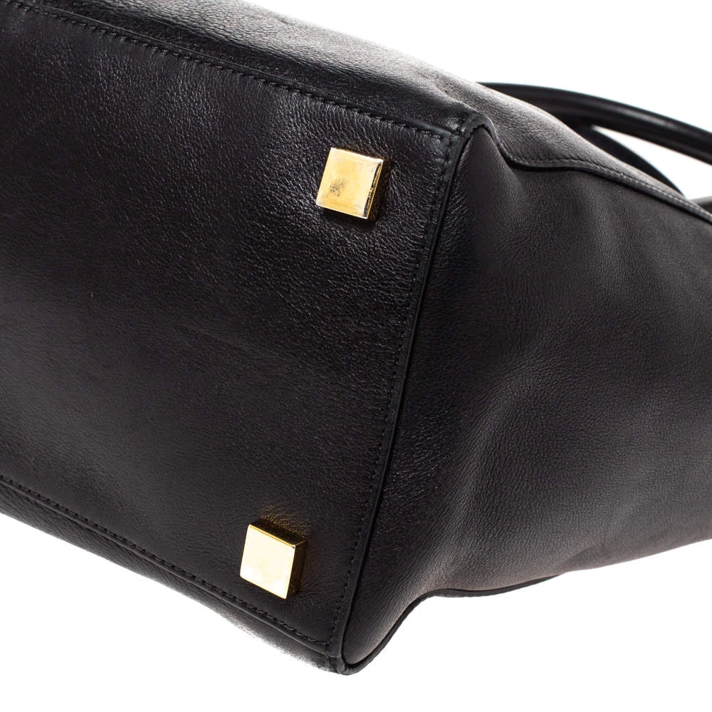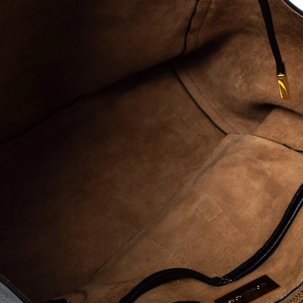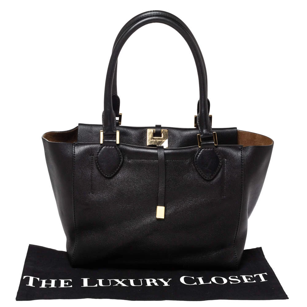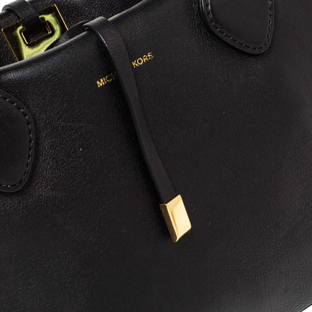 This Miranda tote is from Michael Kors. It has been crafted from quality leather in a splendid black and detailed with gold-tone hardware. The bag has a spacious suede interior and is held by two top handles. This creation is ideal for the fashionable you.