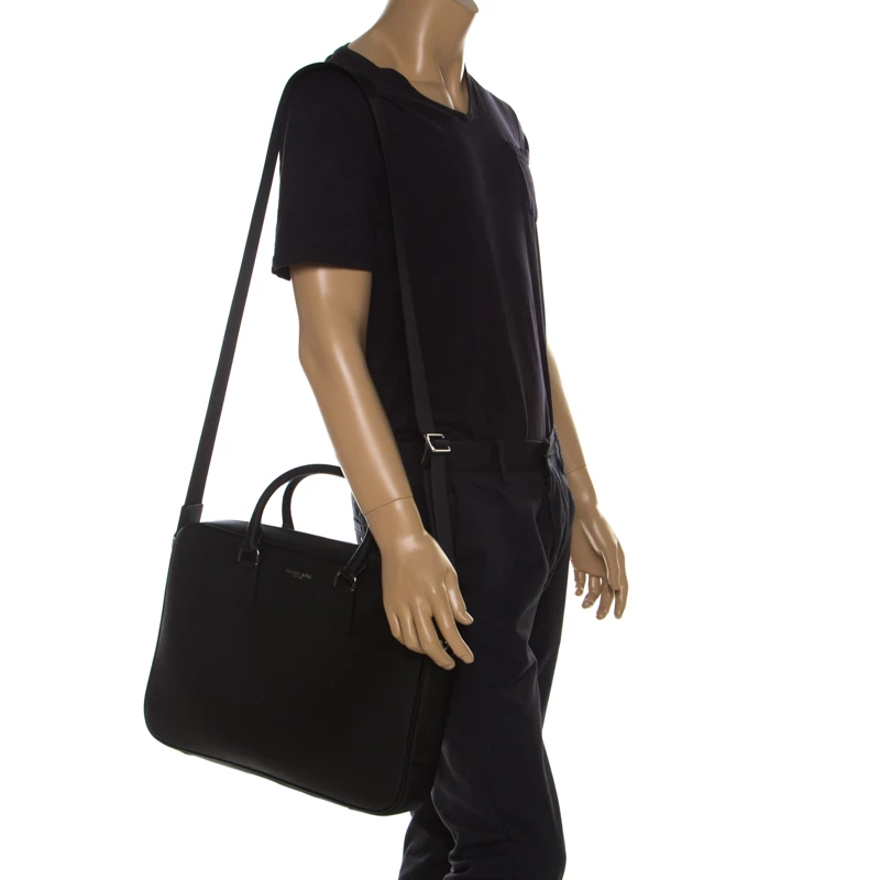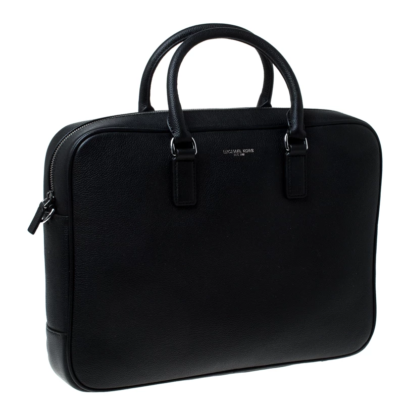 This Michael Kors briefcase brings such a fantastic shape that you’re sure to look fashionable whenever you carry it. It has been crafted from black leather and designed with two handles and a zipper that lead to a nylon interior. This bag is truly durable and stylish.