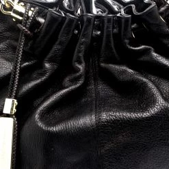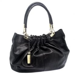 An absolute delight, this tote is a Michael Kors creation. It has been crafted from leather and enhanced with gold-tone hardware. The bag comes with a black exterior with a ruched detail while being held by two braided handles. It is complete with a spacious satin interior.