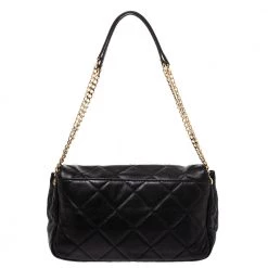 Fall in love with this Sloan bag from Michael Kors. Crafted from black quilted leather, the bag flaunts a metal lock closure on the front. It has a spacious nylon-lined interior that has two zip pockets. This beauty is complete with a chain-link and leather shoulder handle.