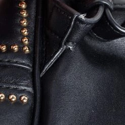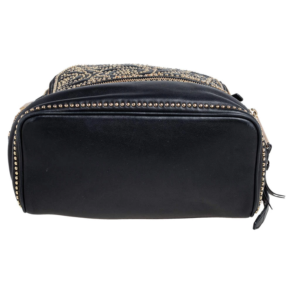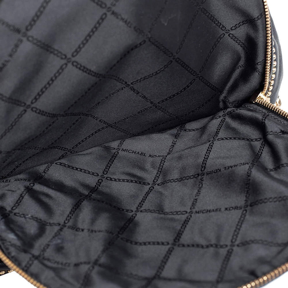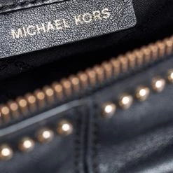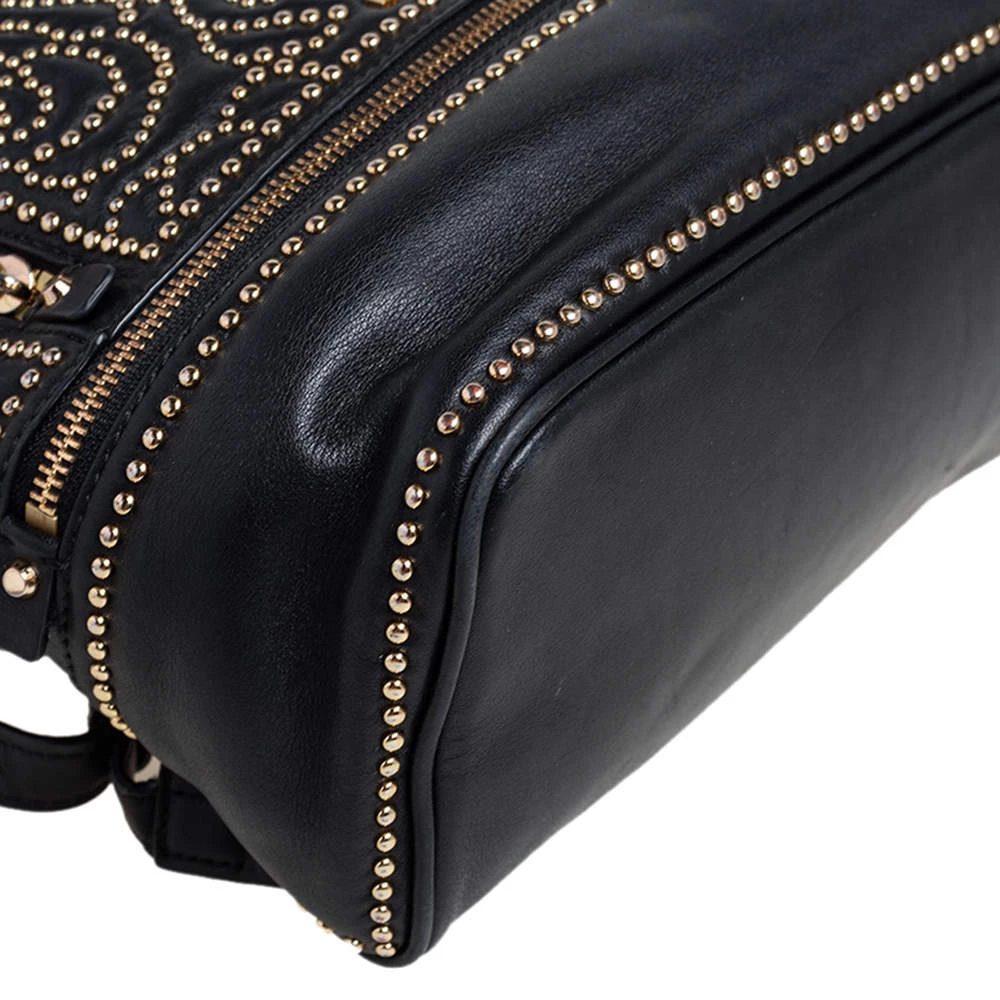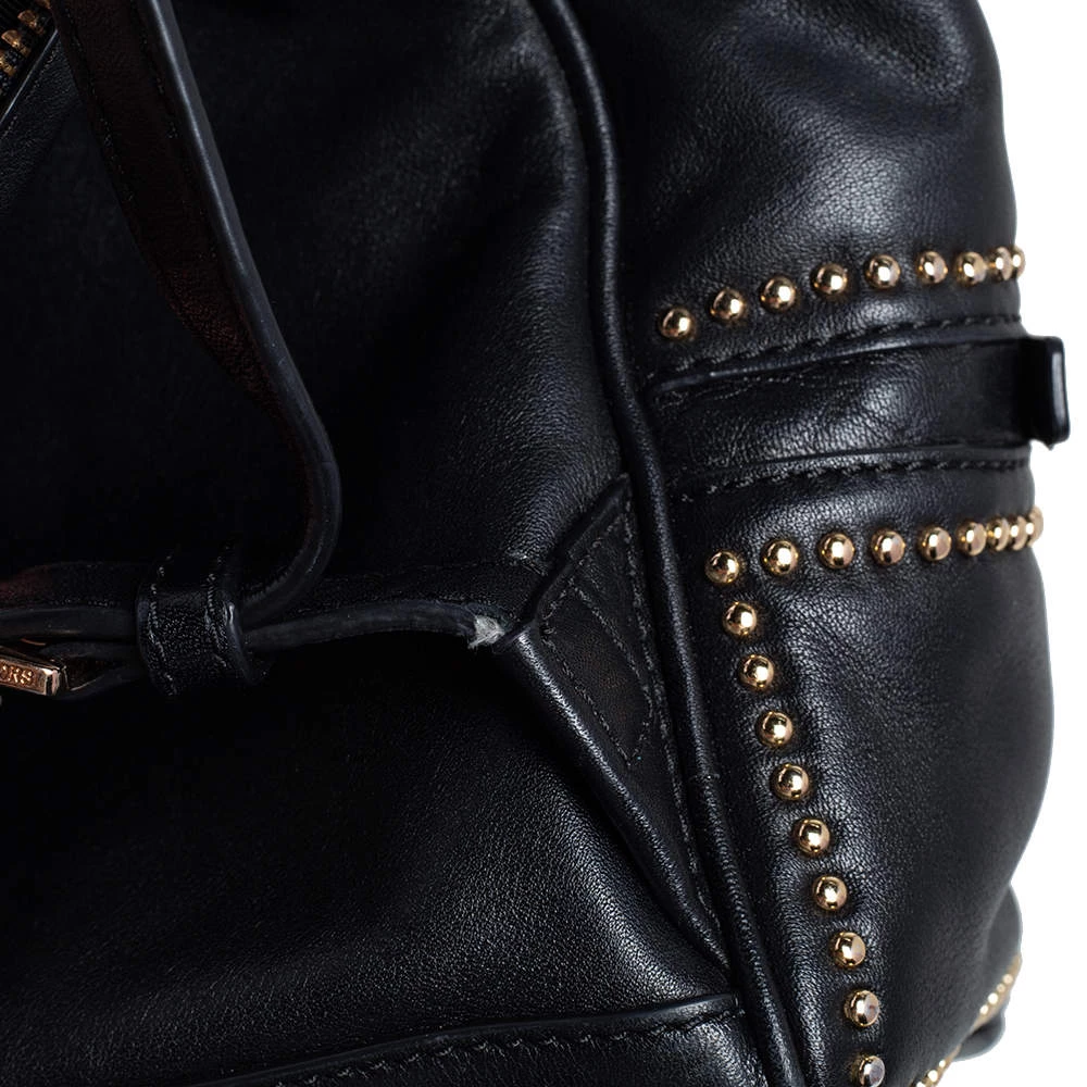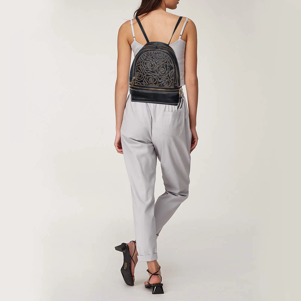 Get set for an uber stylish look with this black Rhea backpack from Michael Kors. It has been crafted from leather and detailed with zippers and studs. The designer backpack for women is equipped with a top handle, adjustable shoulder straps, and fabric compartments.