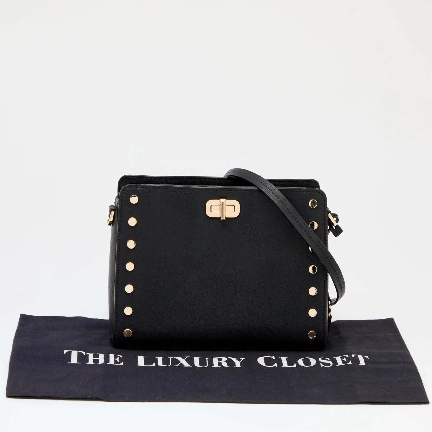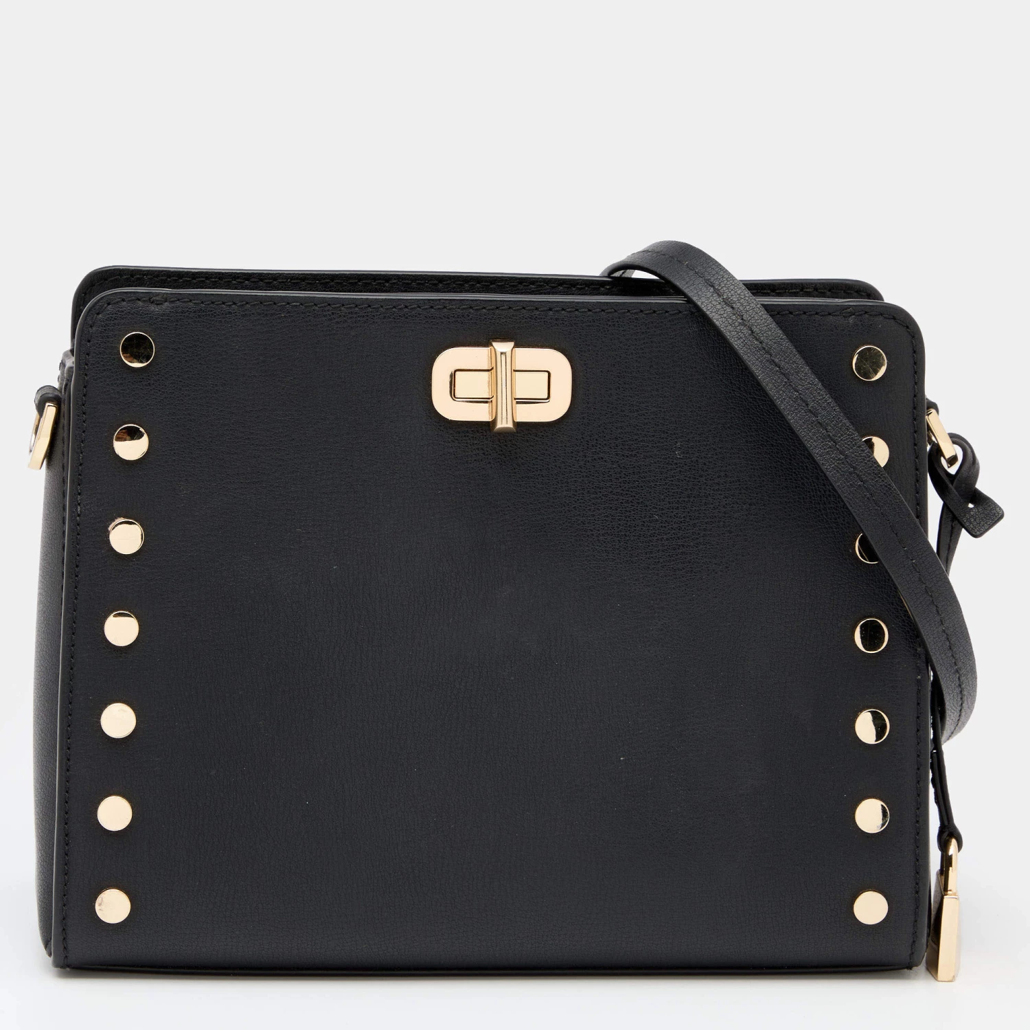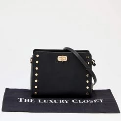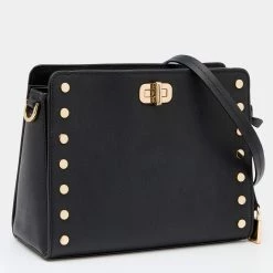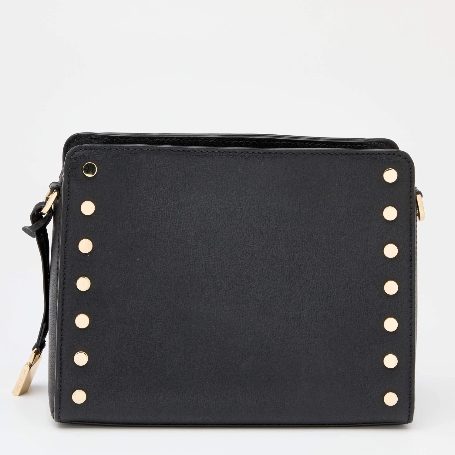 This Michael Kors shoulder bag might just be your next favorite handbag. It is high in style and is functional enough to accompany you on all your busy days. The bag comes crafted using black leather and offers a turn lock on the front and metal studs on the exterior. The bag is held by a shoulder strap.