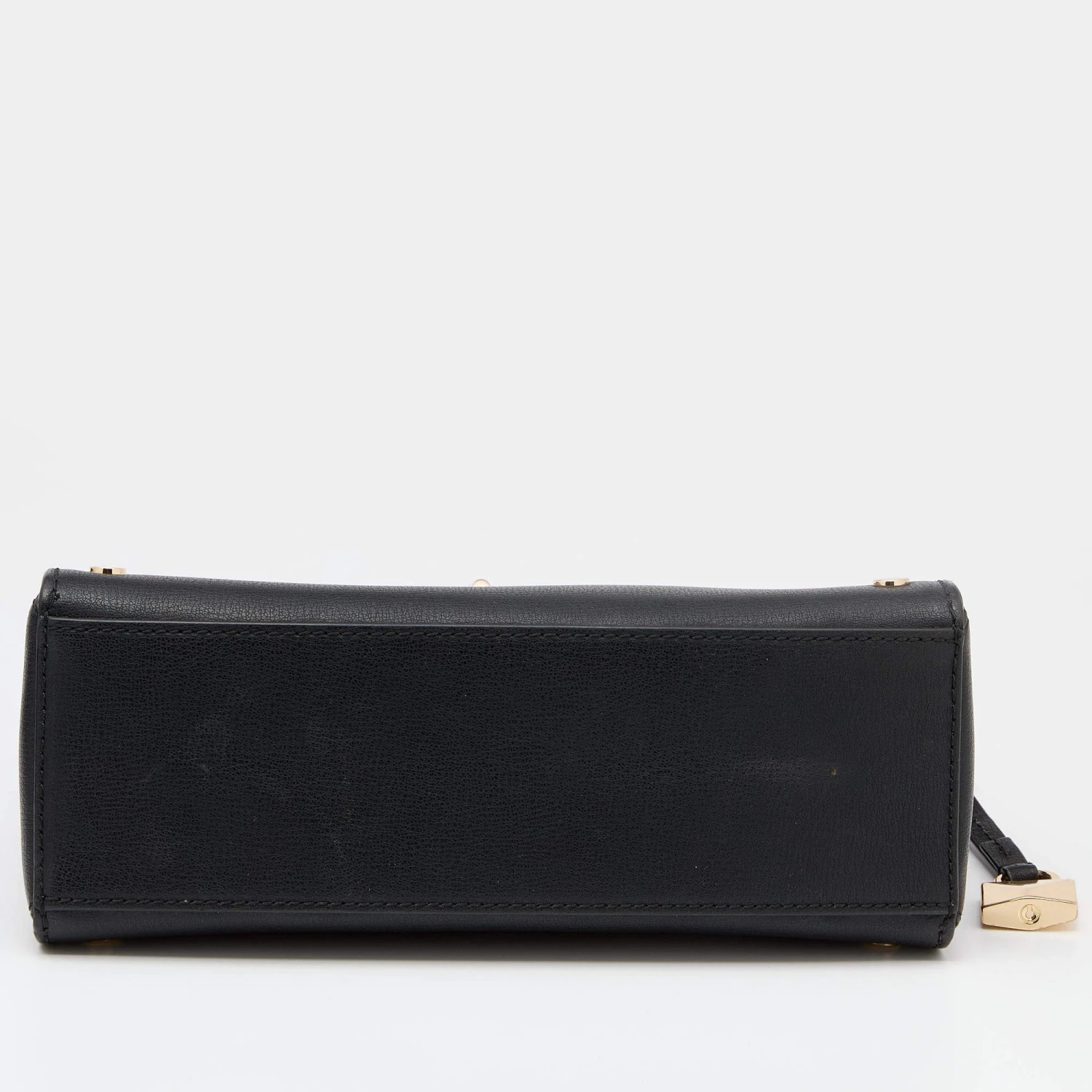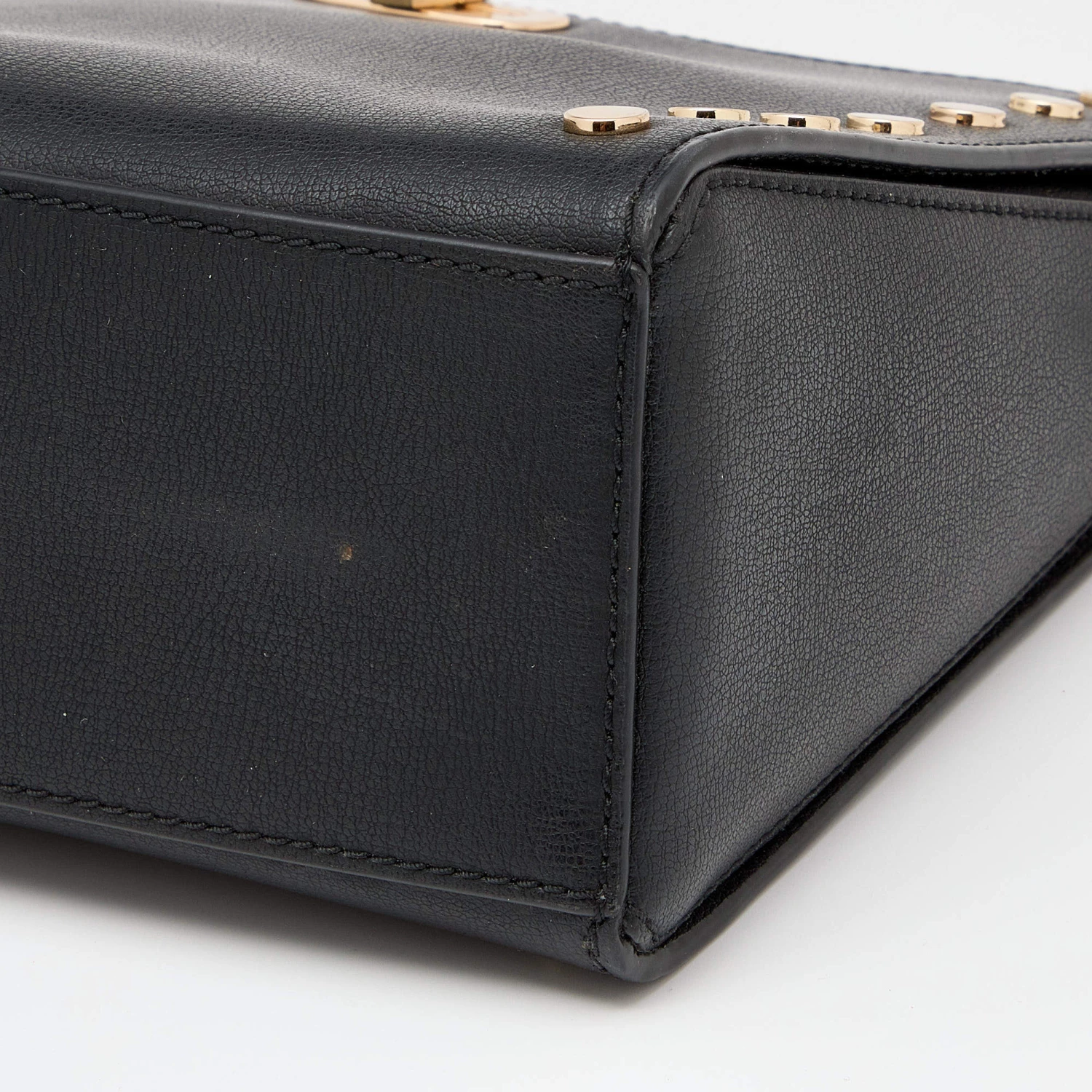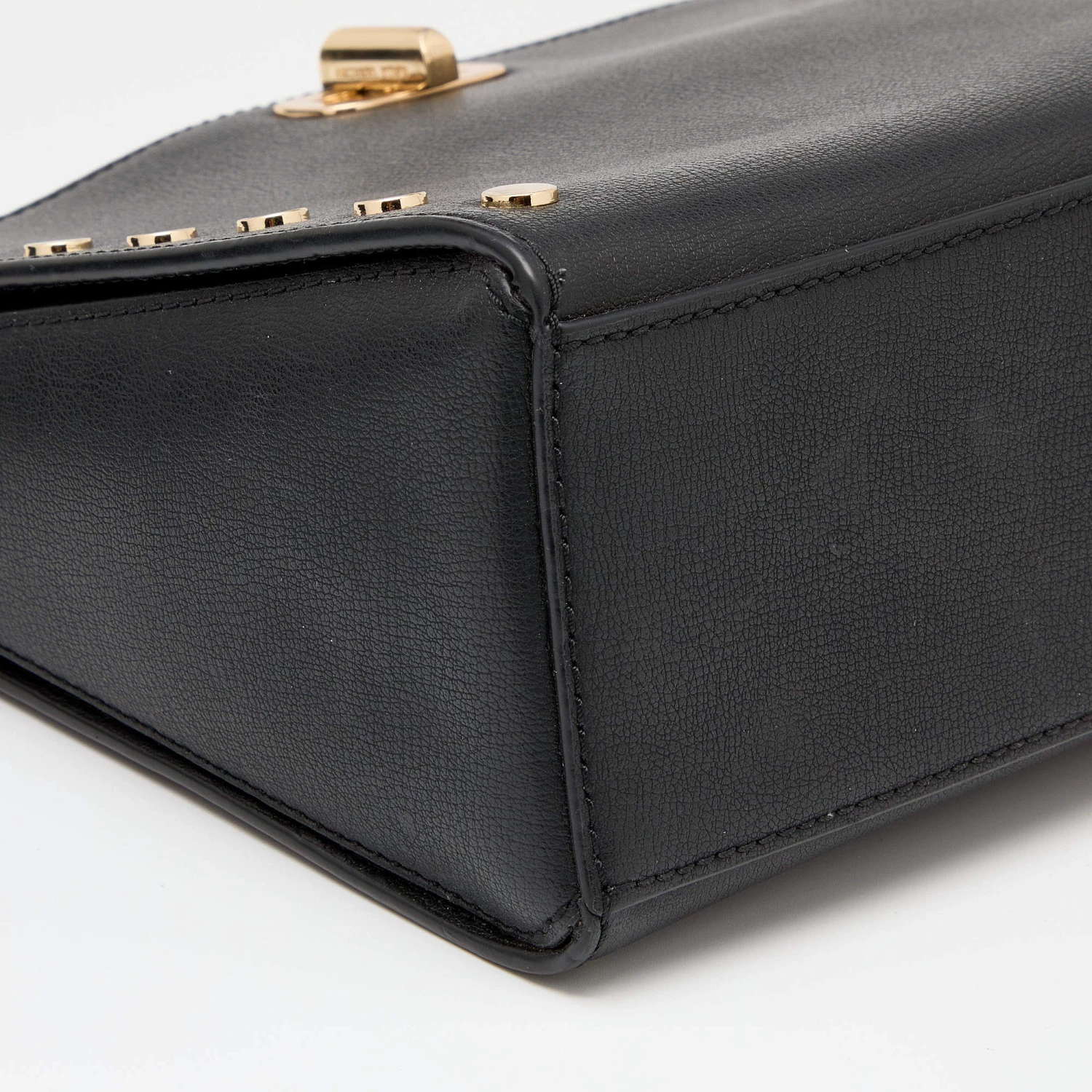This Michael Kors shoulder bag might just be your next favorite handbag. It is high in style and is functional enough to accompany you on all your busy days. The bag comes crafted using black leather and offers a turn lock on the front and metal studs on the exterior. The bag is held by a shoulder strap.