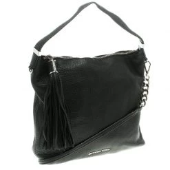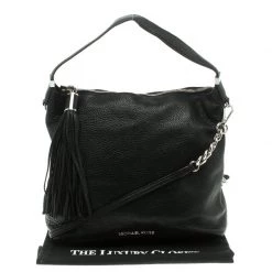 This Weston shoulder bag by Michael Kors is a piece all fashionistas must look out for! Meticulously crafted from leather, it features a black hue and two handles for you to parade it. The bag is equipped with a top zipper that leads way to a spacious nylon-lined interior. Complete with silver-tone hardware and a tassel zipper pull, this bag will make an ideal buy.