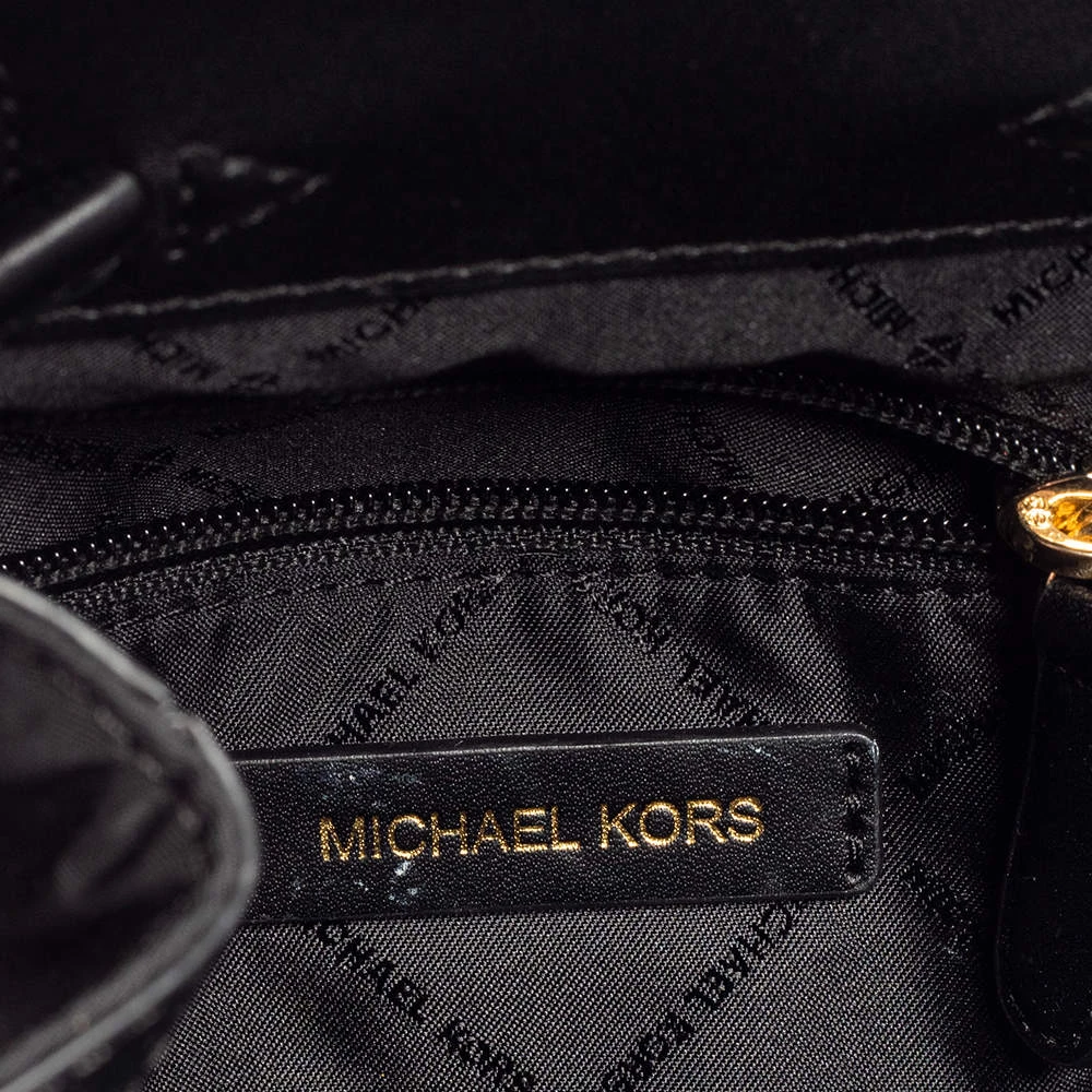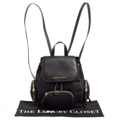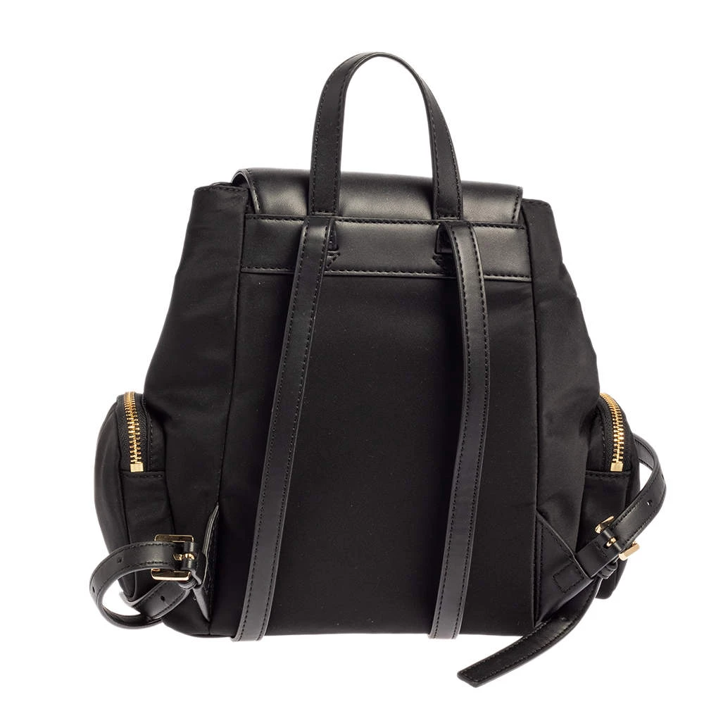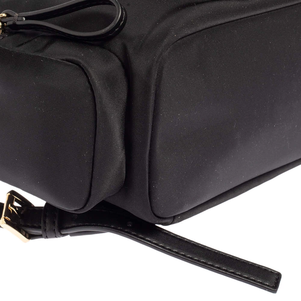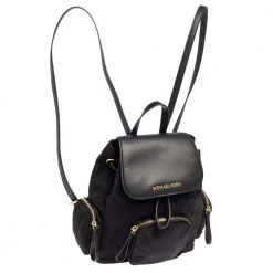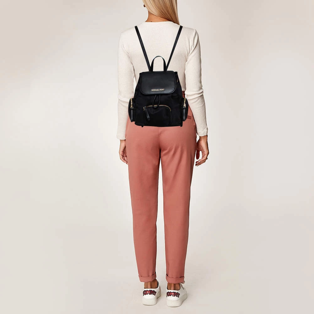 This Abbey backpack from Michael Kors is a functional piece ideal for daily use. The stylish bag is crafted from black nylon and leather and detailed with multiple pockets on the exterior. It features a top handle and adjustable shoulder straps. The nylon-lined interior is perfect for stowing all your basics.