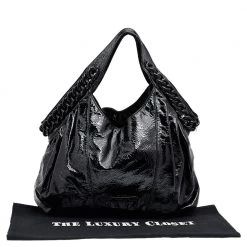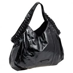 This hobo from Michael Kors gives your belongings a stylish and secured home. It has been tailored using black patent leather on the exterior with gunmetal-toned hardware. This hobo is held by straps detailed with chain trims and proves to be great for daily use.