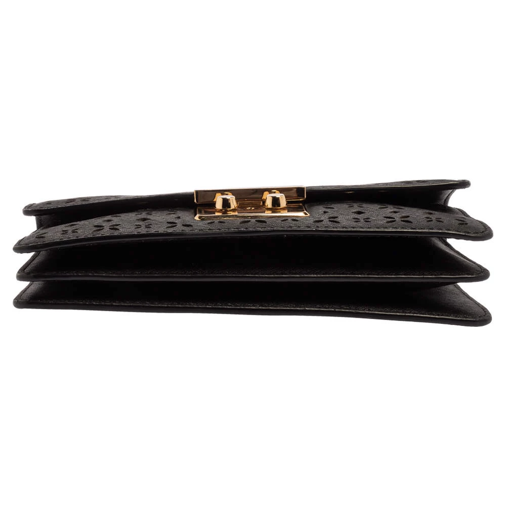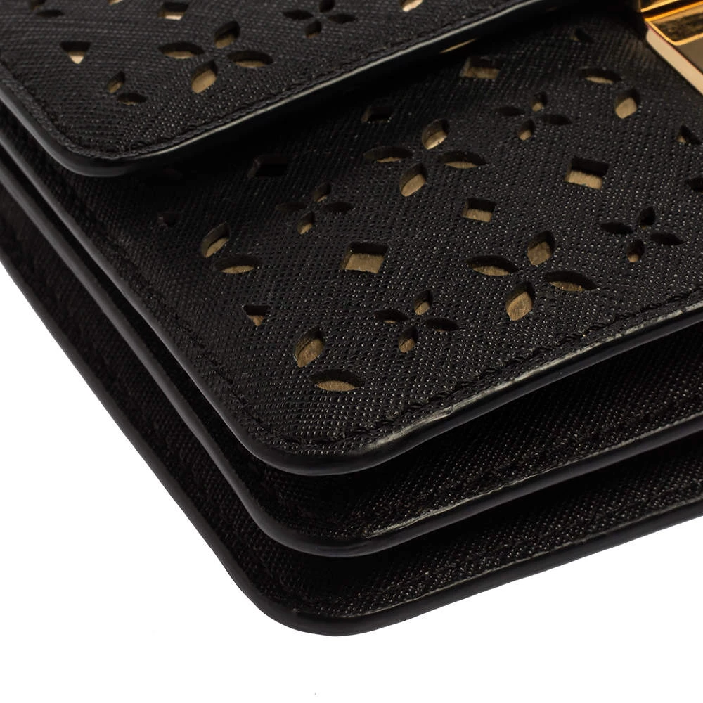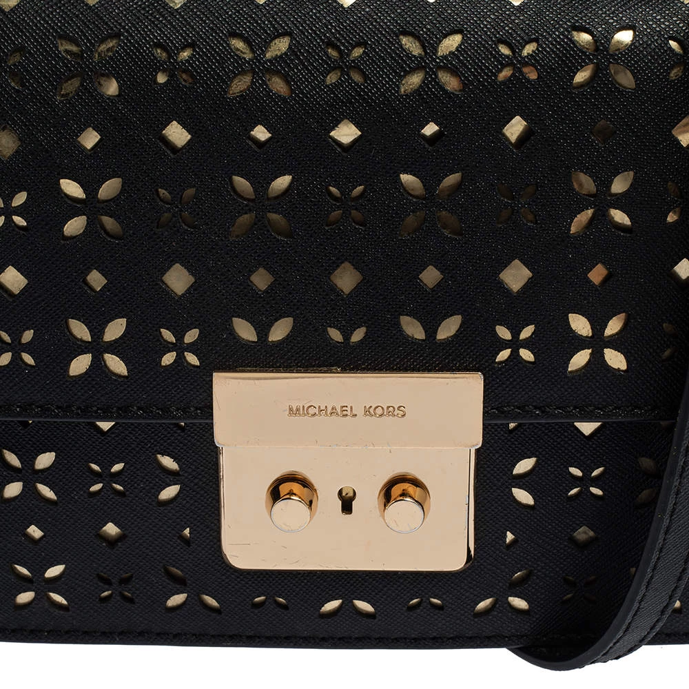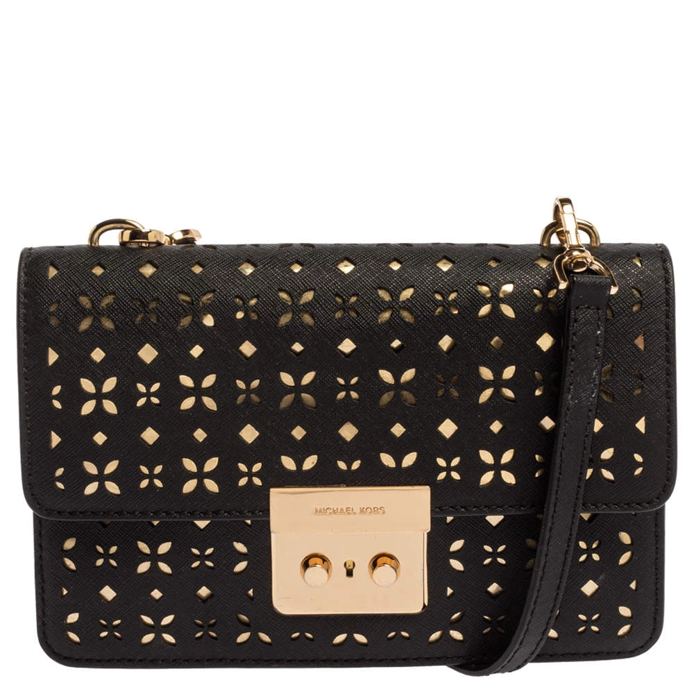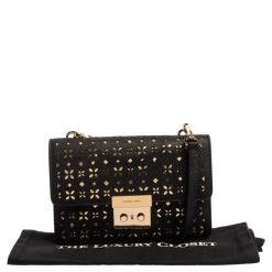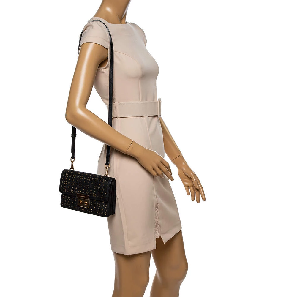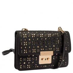Remarkable for its brilliant craftsmanship, this bag from Michael Kors will upgrade your style quotient. Make a stunning addition to your accessory collection with this rich and fabulous perforated leather bag. The nylon lining ensures the quality of this bag. Be it any occasion, this black bag will work with all your ensembles.