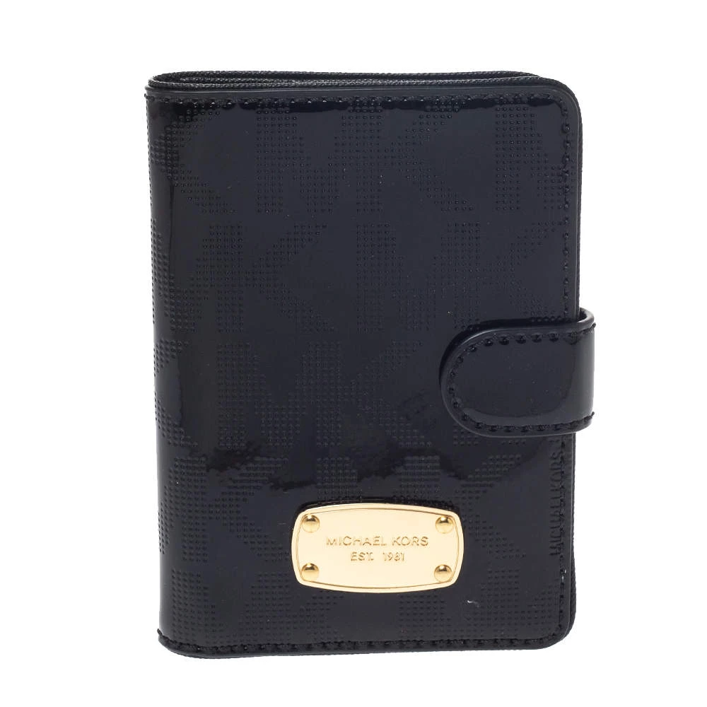 Crafted from the brand’s signature perforated patent leather, this black Michael Kors passport holder features a bifold style and comes with a logo plaque on the front. It comes with an interior that can easily hold your passport. Gift it to someone who loves to keep it minimal and chic.
