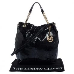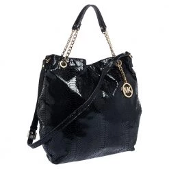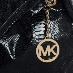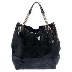 This lovely bag by Michael Kors carries an elegant and chic design. It will be a head-turning addition to anything you wear it with. It features a gold-tone logo charm at the front, patent leather and suede exterior flaunting a python effect, twin chain handles, and a nylon-lined interior. Grab this striking piece now!