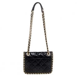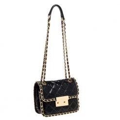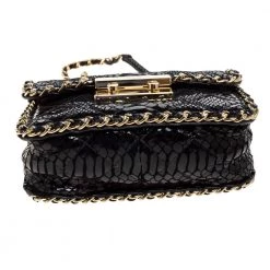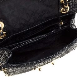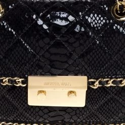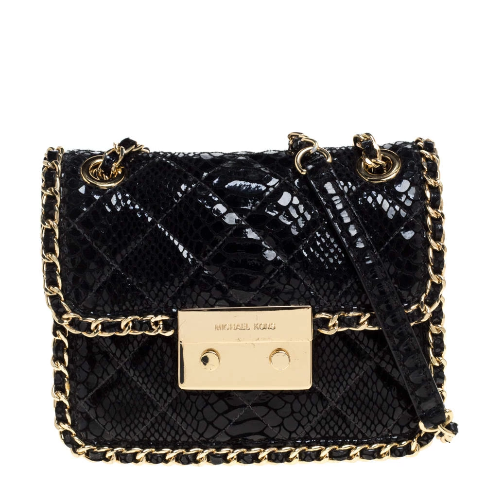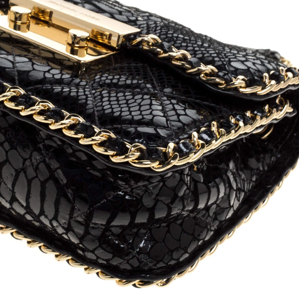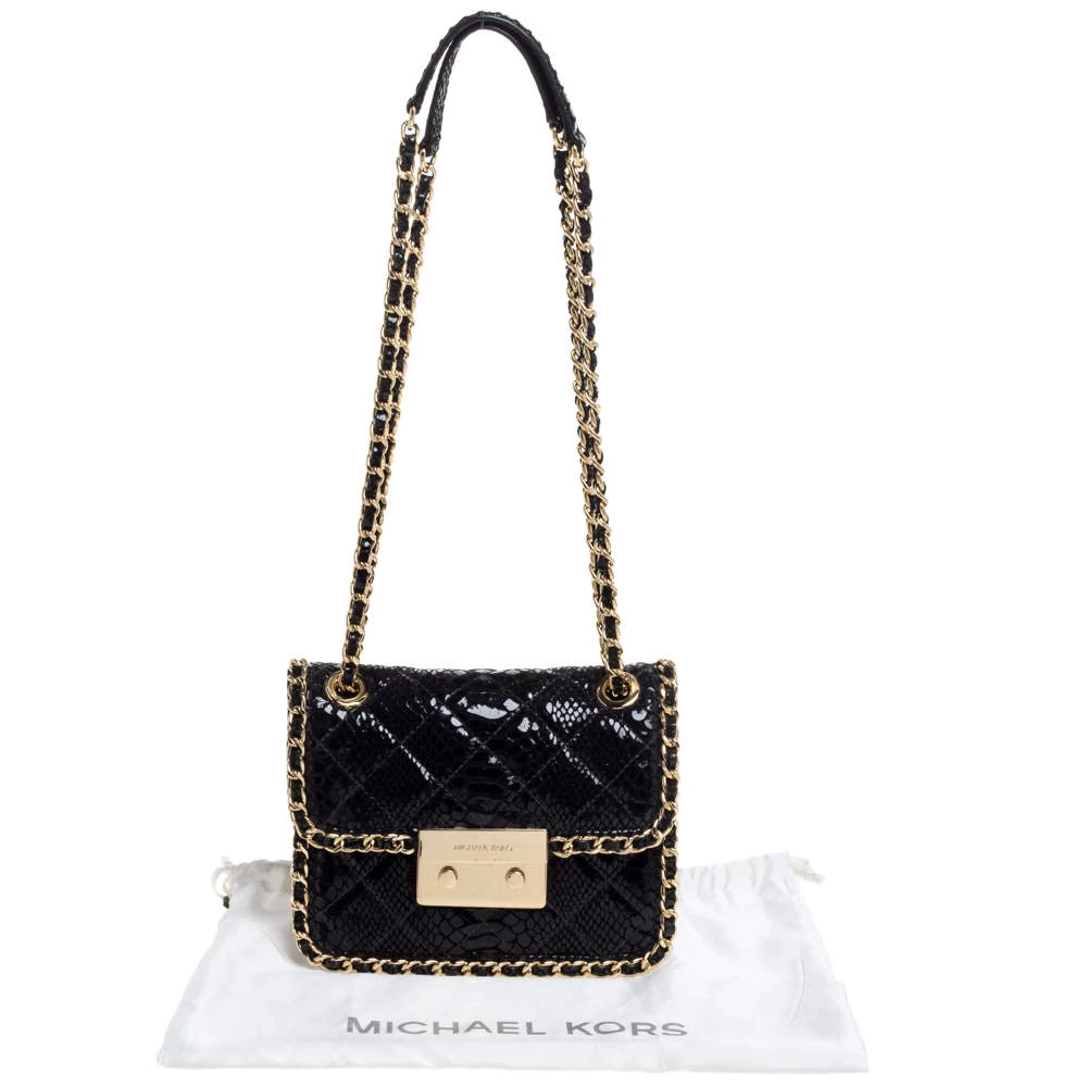 Elevate your style with this gorgeous Sloan shoulder bag by Michael Kors. Crafted from black python-embossed leather, the bag features gold-tone hardware. It has a flap closure and a nylon-lined interior. This beauty is complete with dual chain handles.