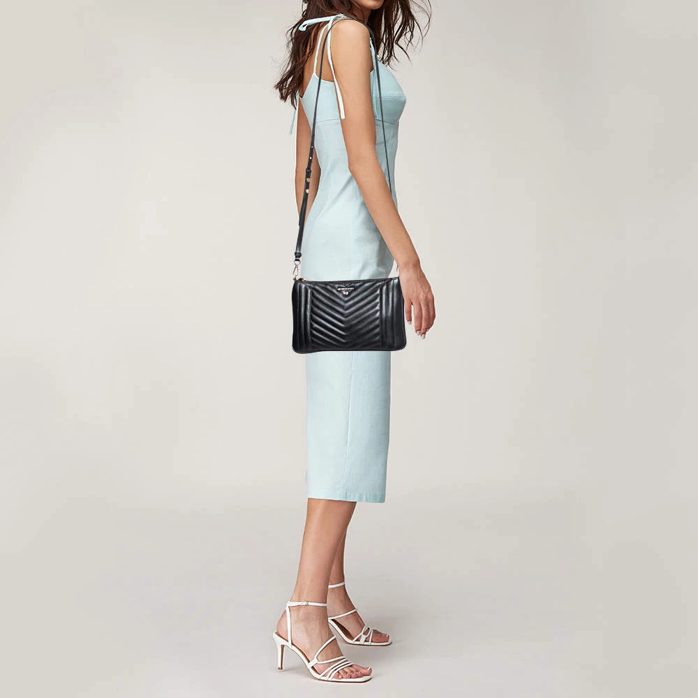 This Michael Kors tote is beautiful in so many ways. From its design to its structure, this quilted leather bag exudes charm and high fashion. It flaunts a shoulder strap for you to swing it and a fabric-lined interior to hold all your essentials dutifully. Classy in black, it is added with a brand signature on the front for a recognizable sign-off.