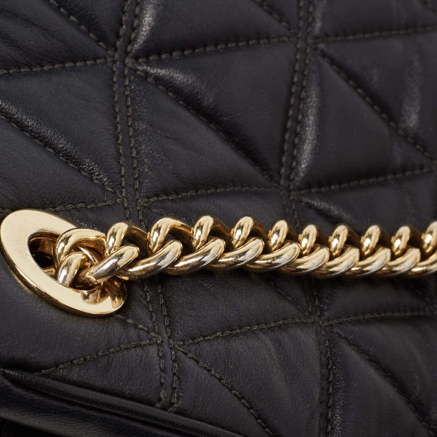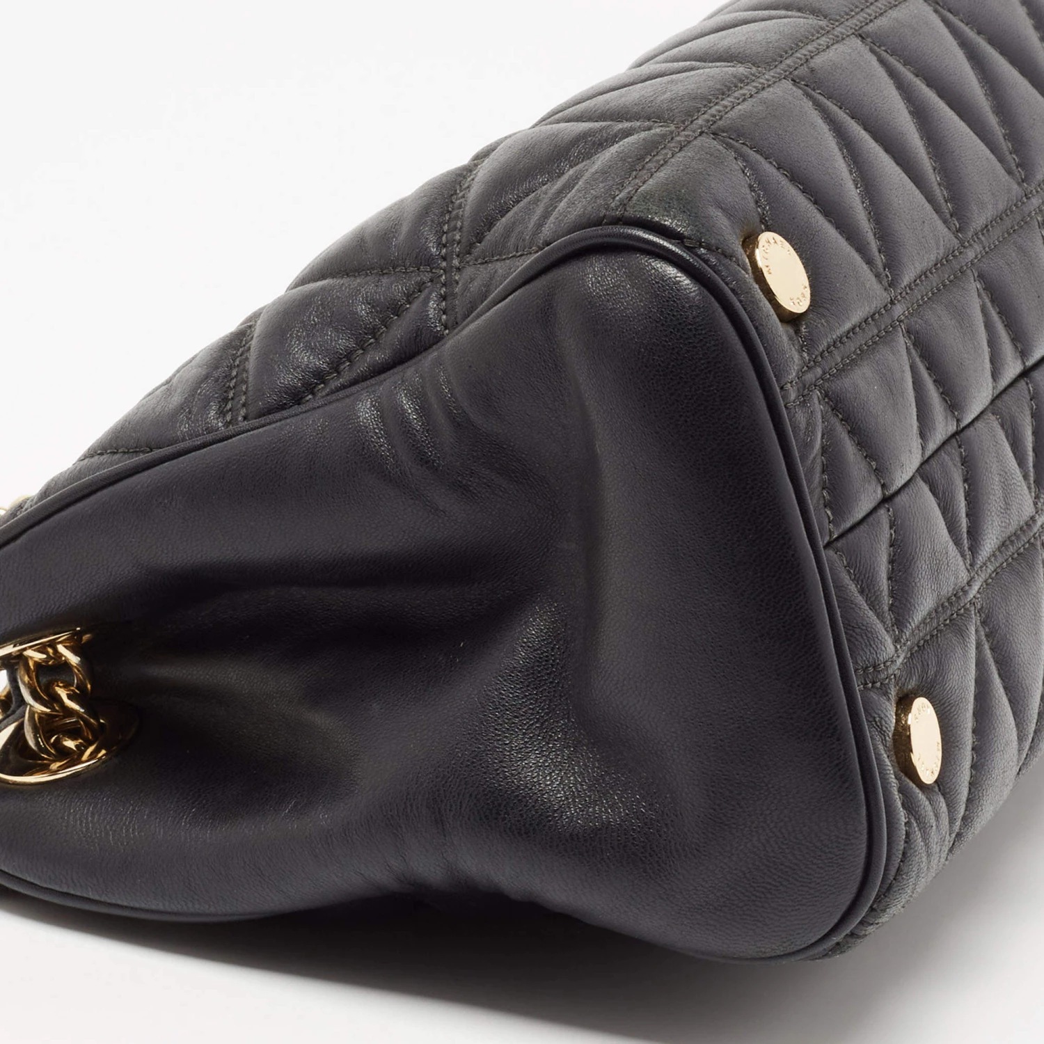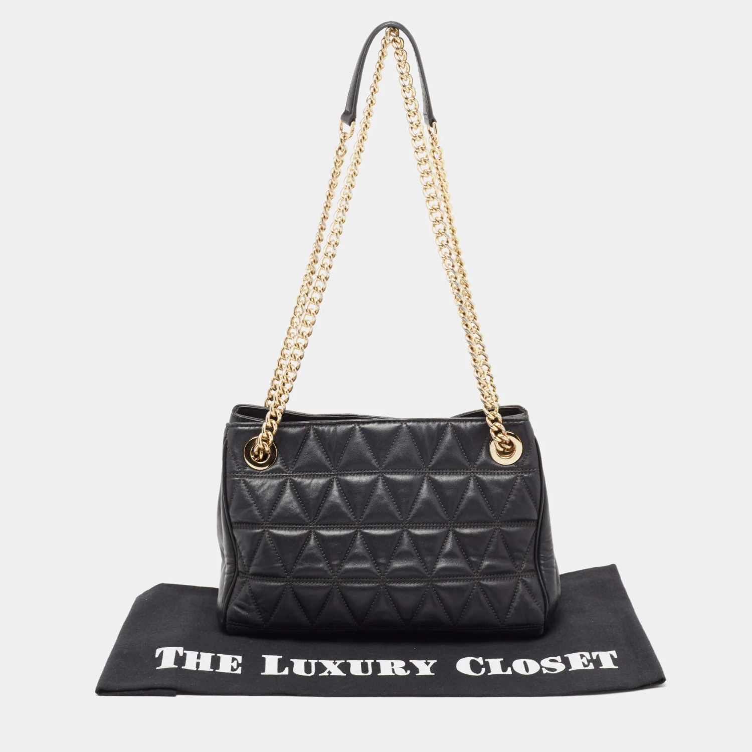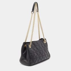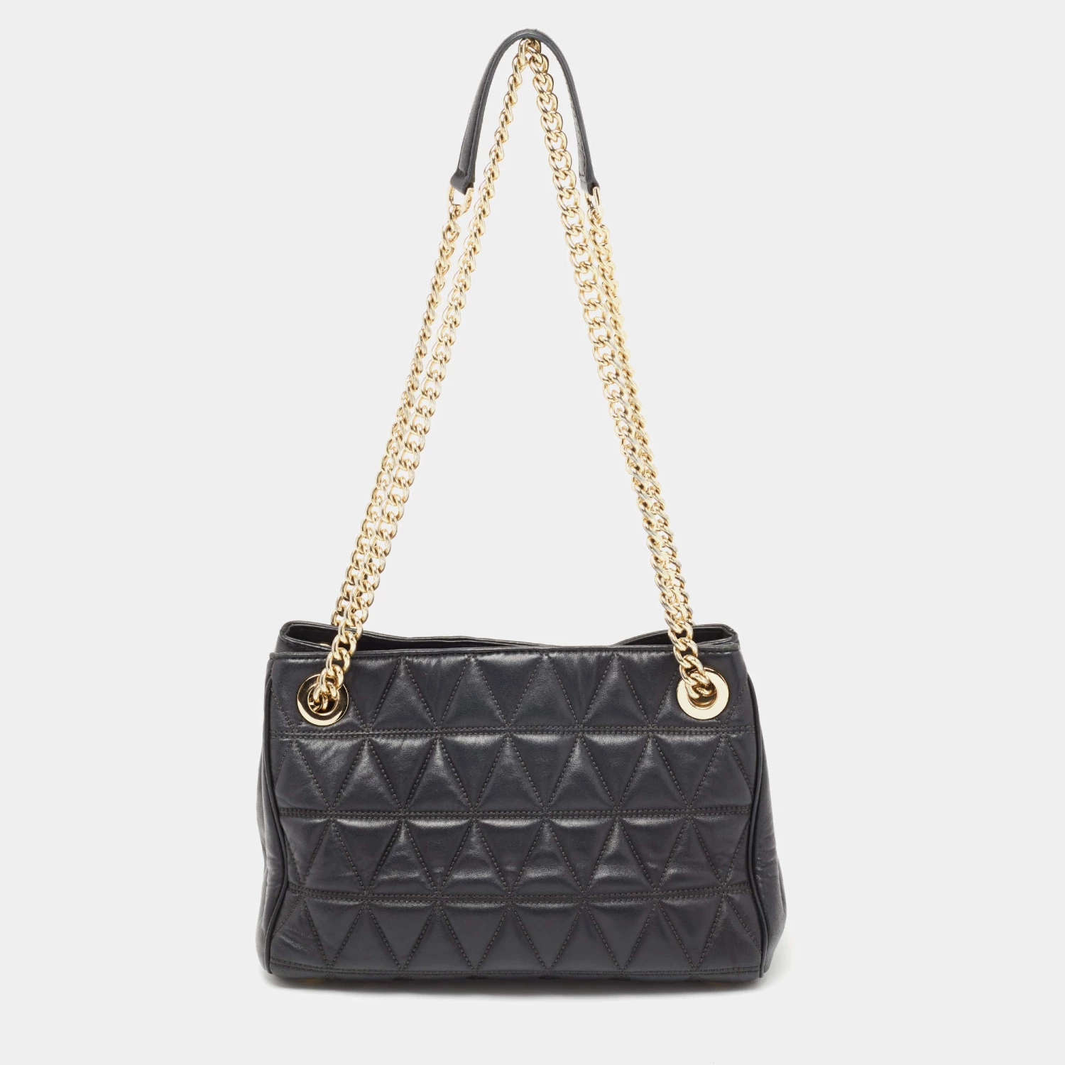 Let this cute and classy Sloan shoulder bag from Michael Kors elevate your party ensemble perfectly. It is made from black quilted leather into a chic silhouette. It is enhanced with gold-toned fittings and a fabric-lined interior. This bag comes with a 30 cm shoulder strap.