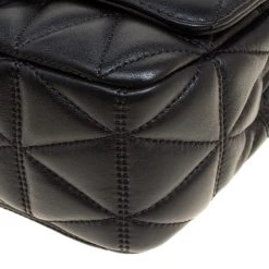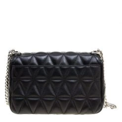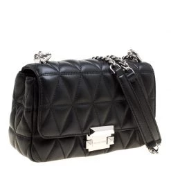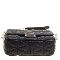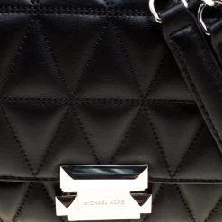 Complete your evening-ready look with this shoulder bag from Michael Kors. Crafted in a boxy silhouette with a quilted leather body, this bag features a flap style secured with a silver-tone buckle closure. This bag comes fitted with silver-tone shoulder straps attached to it. It is ideally sized to hold just essentials say a cell phone, cards and currency