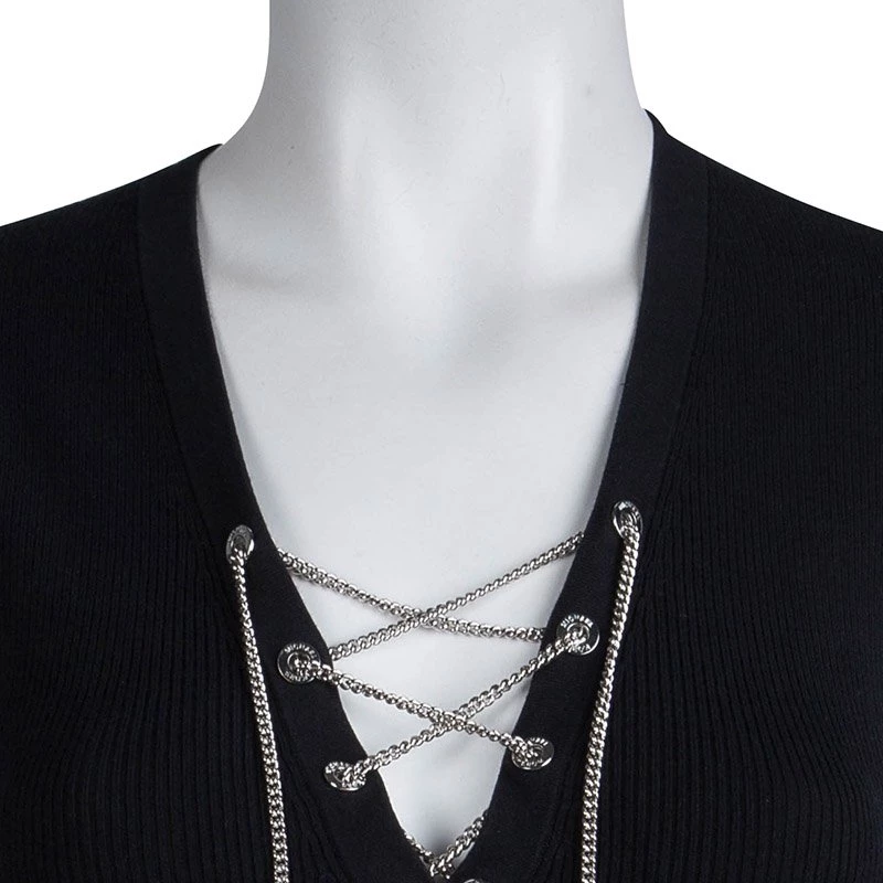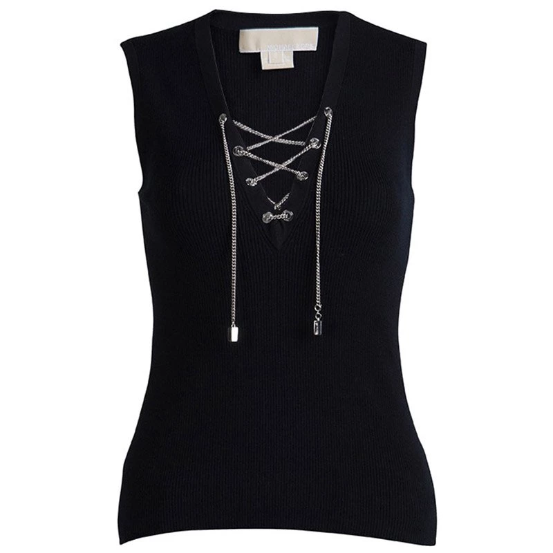 Complete a stylish look with this black top from Michael Kors. Made from a cotton blend, this top has been styled as a sleeveless with a chain detail on the front. Wear this over your jeans and sneakers.