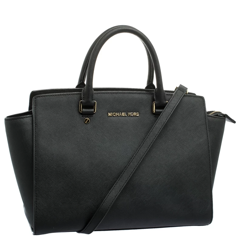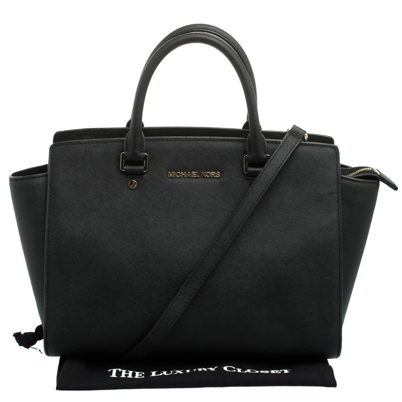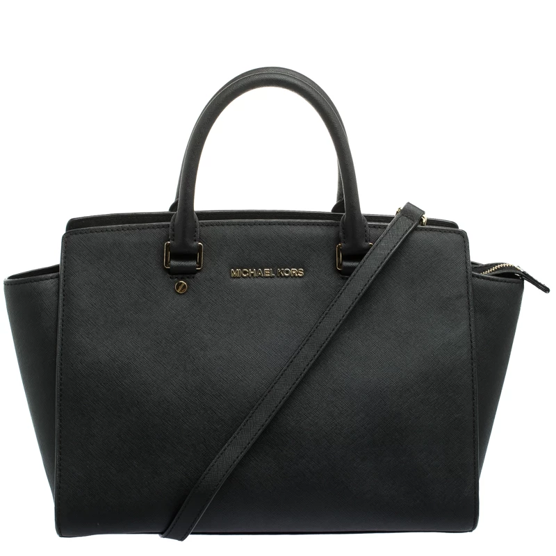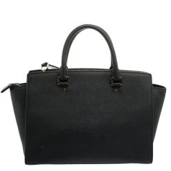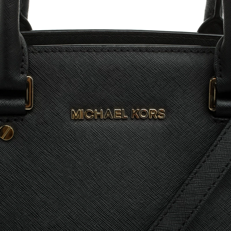 Elevate your style with this gorgeous Selma tote by Michael Kors. Crafted from black Saffiano leather the bag features dual top handles, detachable shoulder strap and protective metal feet at the bottom. It has a spacious fabric lined interior that houses two slip pockets. This beauty is totally worth the splurge!