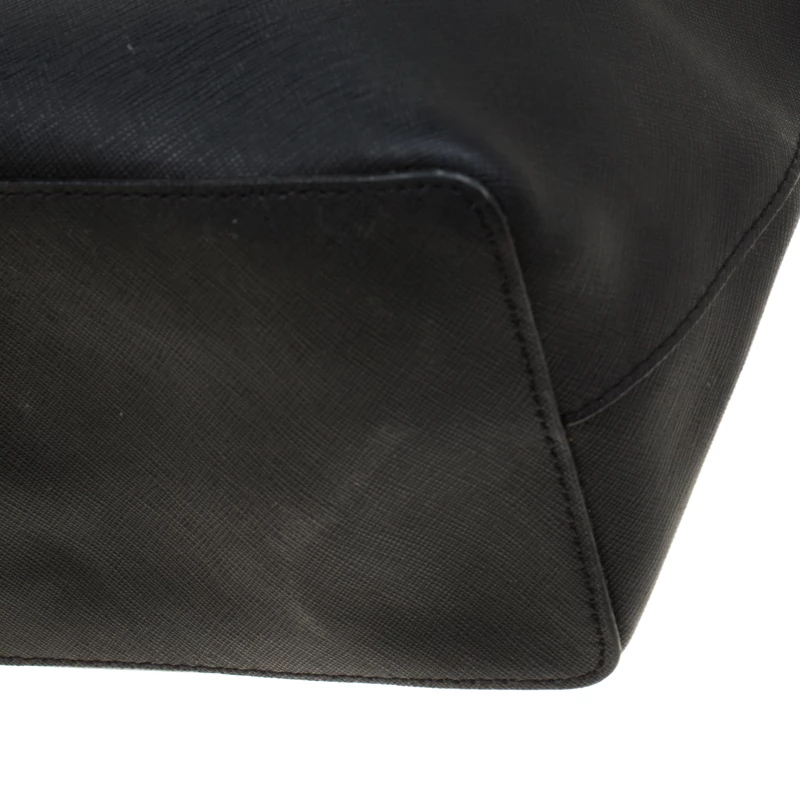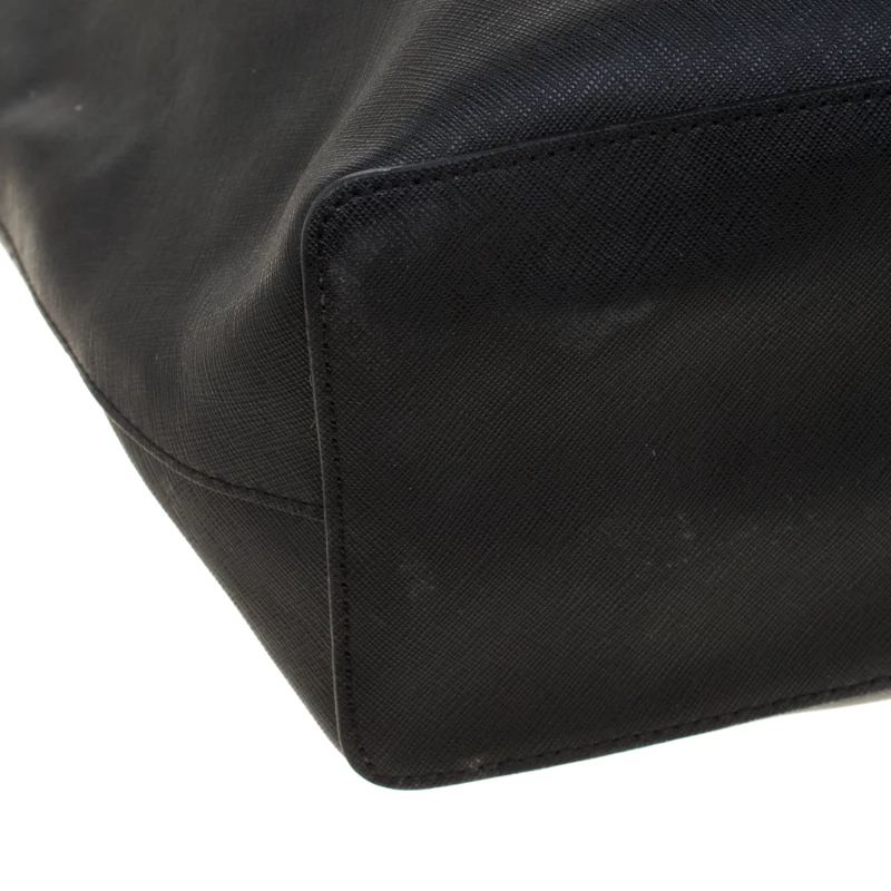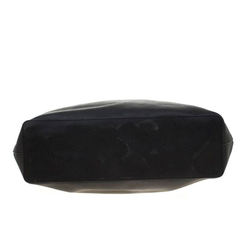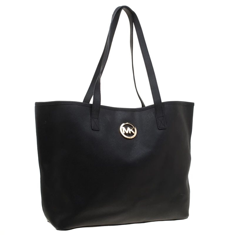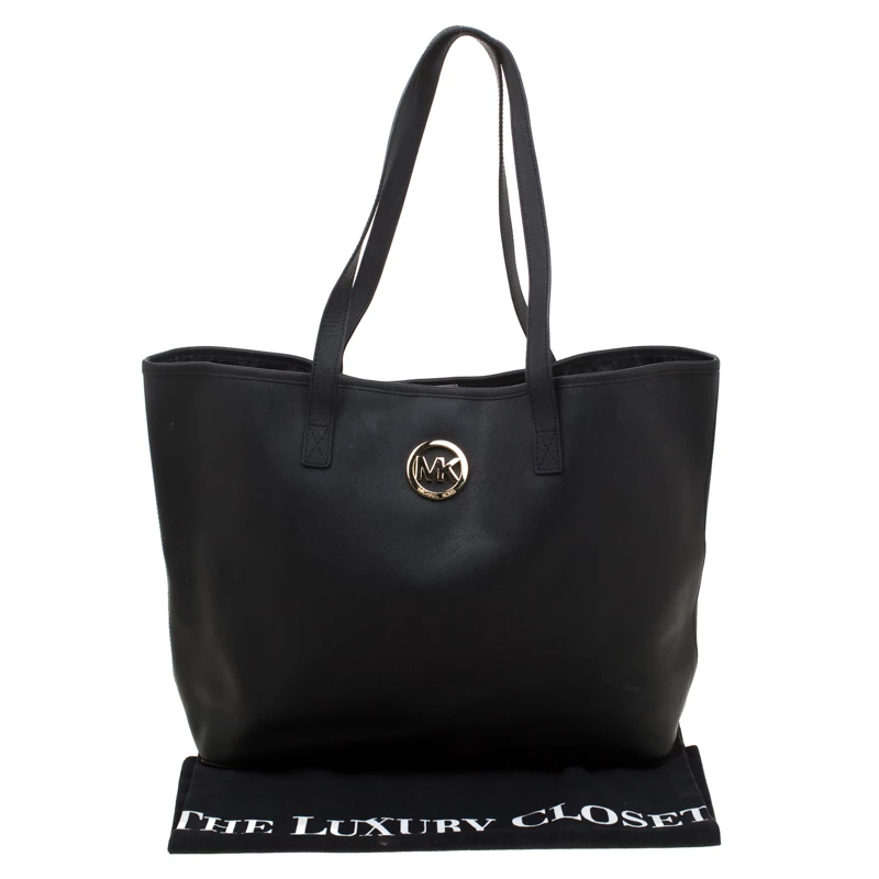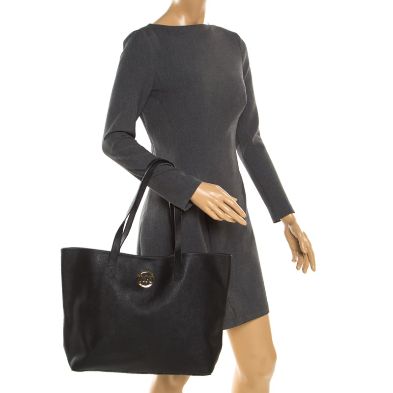 This shopper tote from Michael Kors is a fabulous piece. The bag comes in a black Saffiano leather exterior and is accented with their MK logo on the front. It features dual handles and a nylon-lined interior perfectly sized to hold your necessities. Effortlessly stylish this tote deserves to be in your arms.