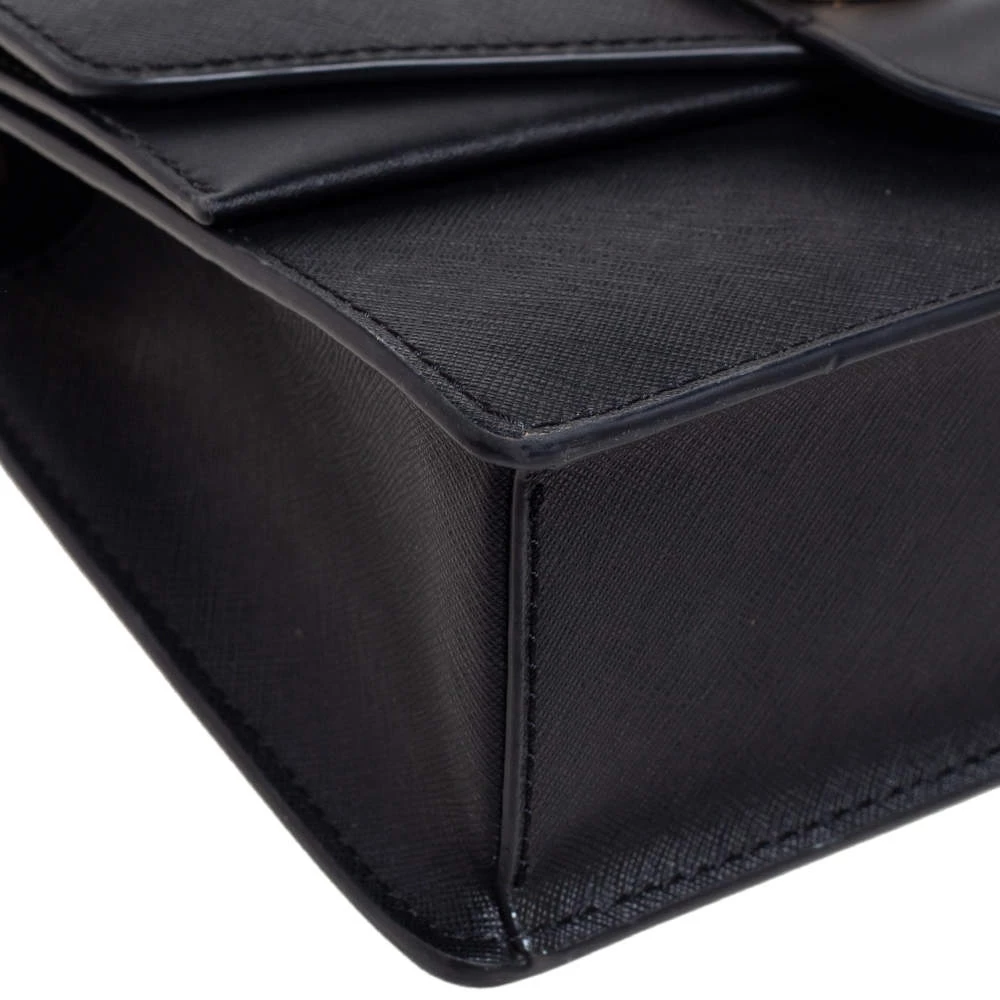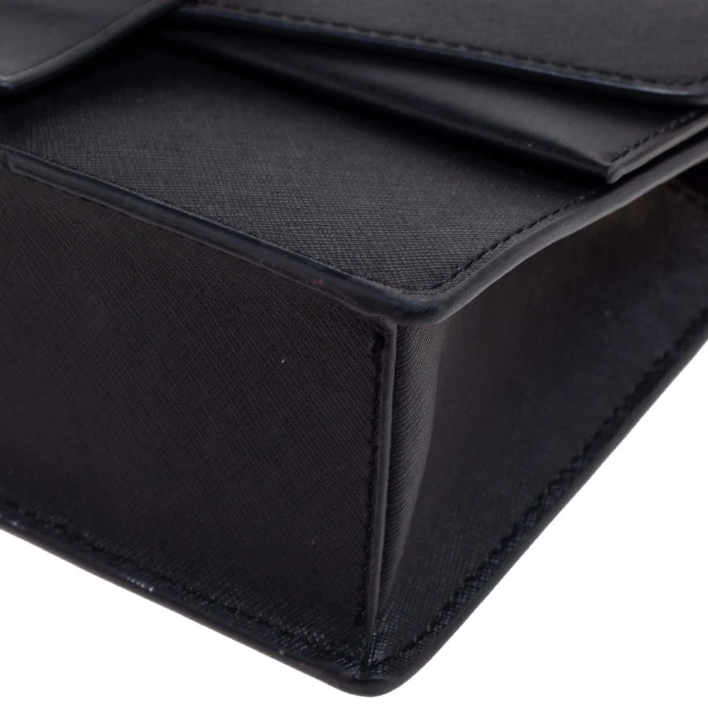 A structured and compact crossbody bag can assist you with many outings and can be styled with most of your attires. Michael Kors’ bag is an example of the label’s penchant for creating staple pieces. It is crafted from Saffiano leather in a black shade and features an MK logo on the front and an Alcantara-lined interior.