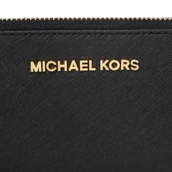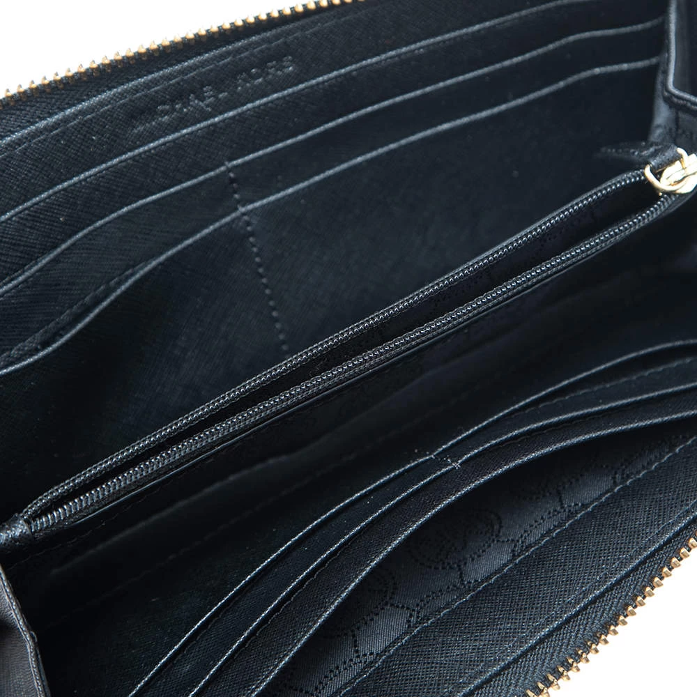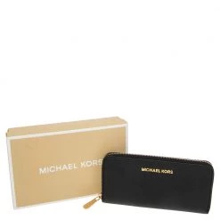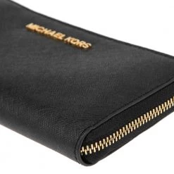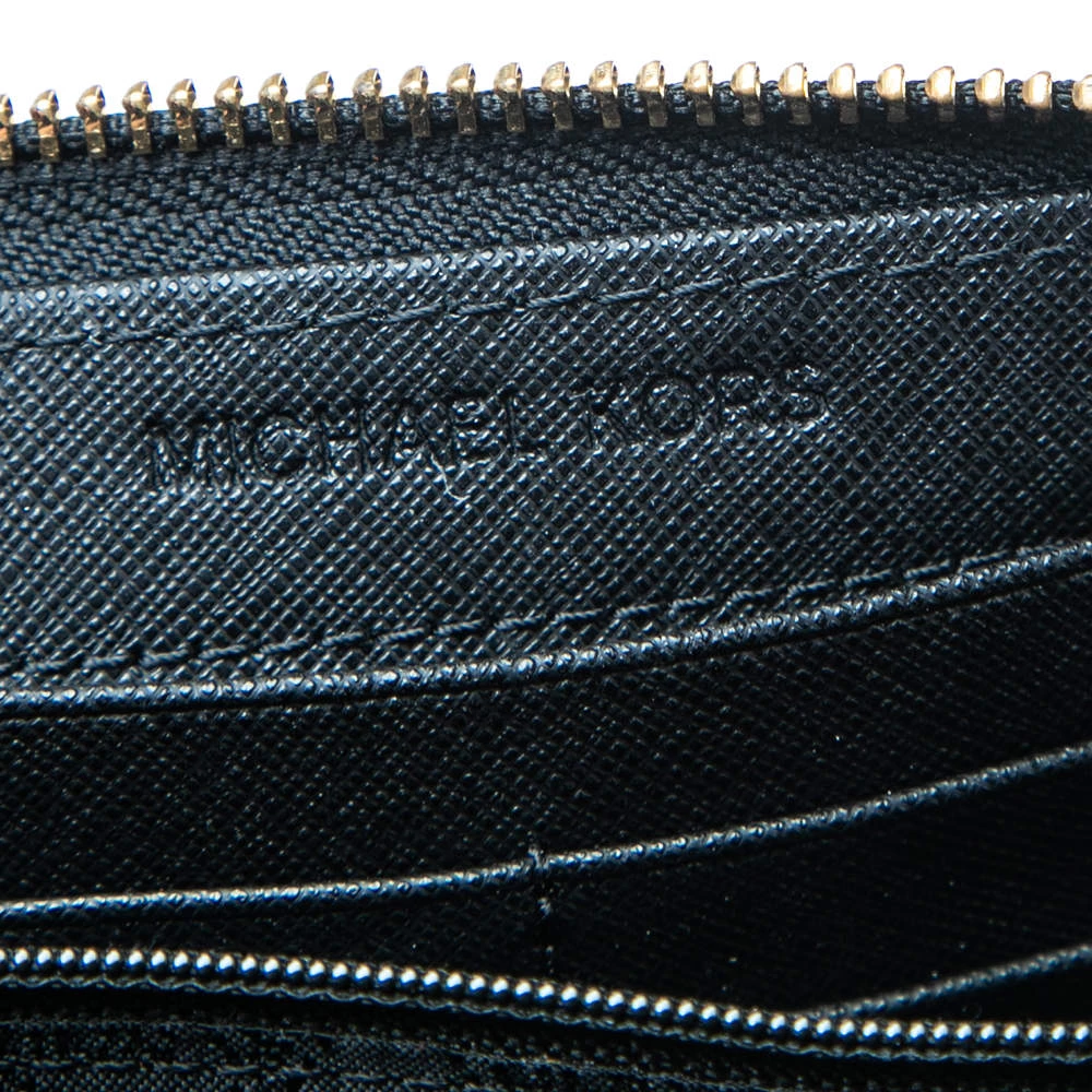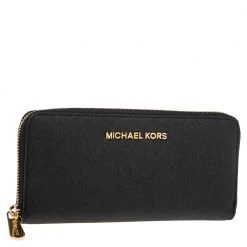 Every woman deserves to have a beautiful wallet in her collection. Crafted from leather this Michael Kors wallet comes with a zip closure that opens to interior housing compartments for currency and bills, one zipped coin pocket, and multiple card slots.