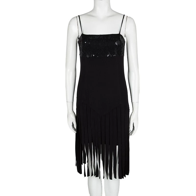 Michael Kors brings you this gorgeous dress that will be an amazing wardrobe addition. It has been beautifully designed with sequins on the top and fringes at the bottom. The sleeveless dress is complete with a back zipper.