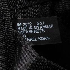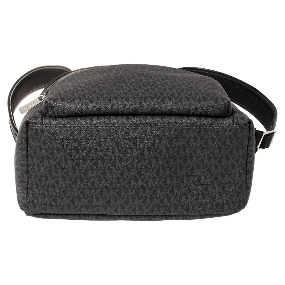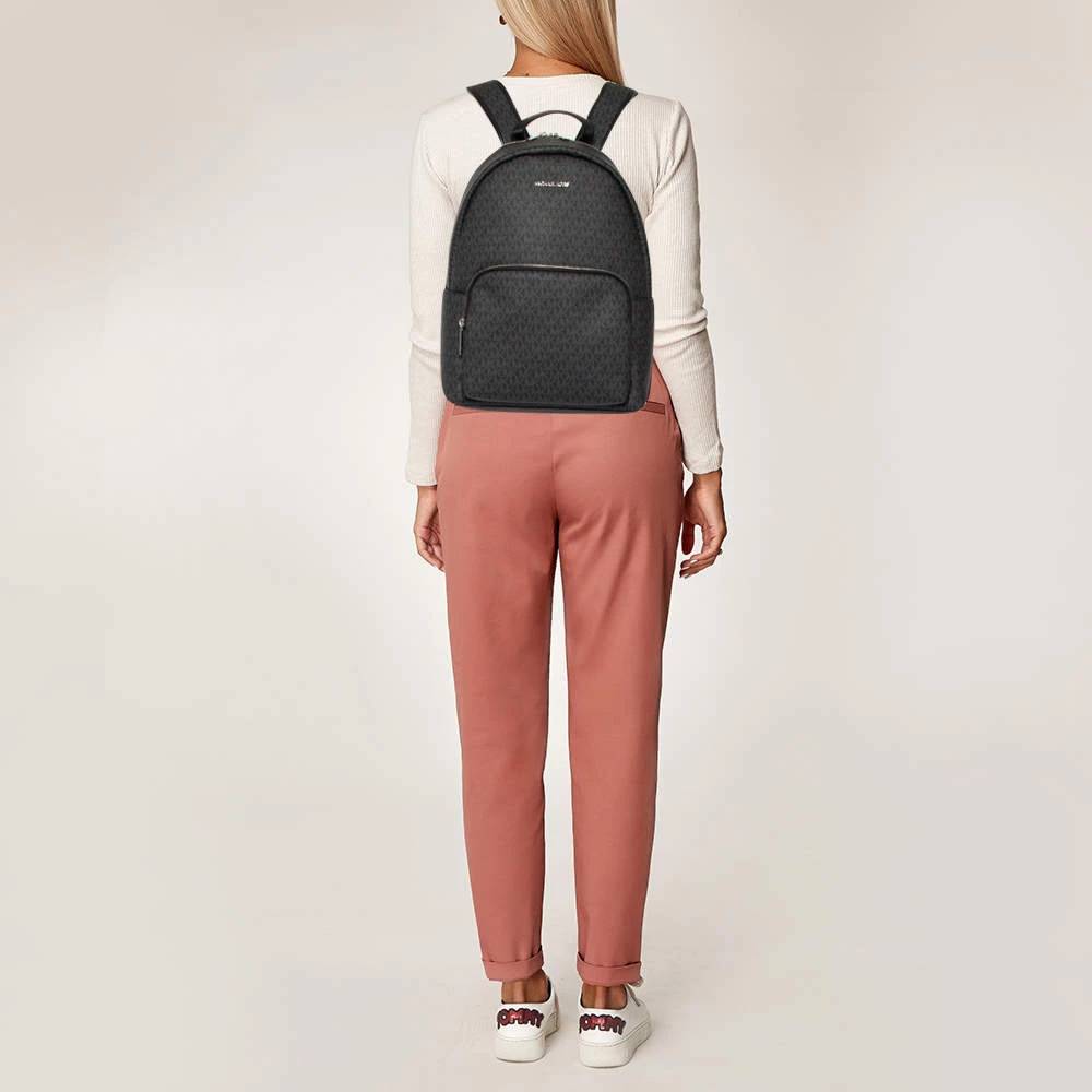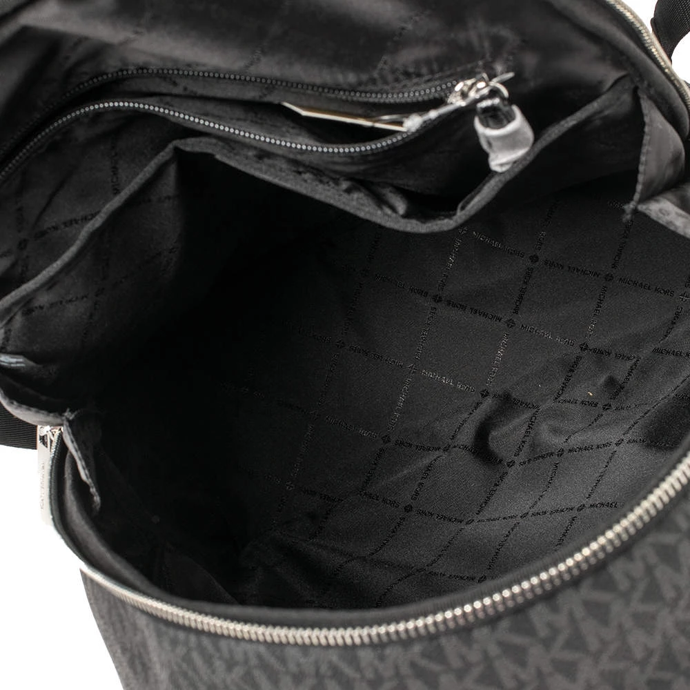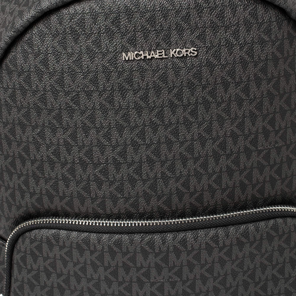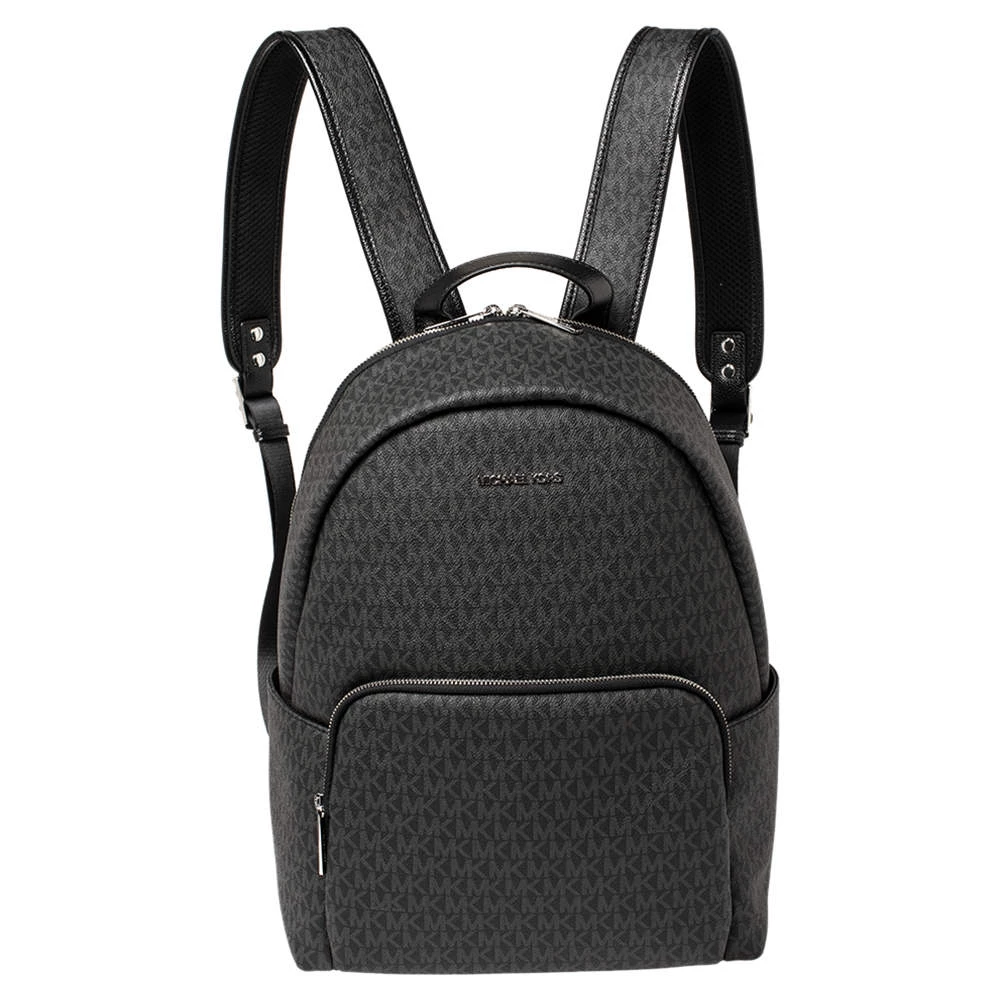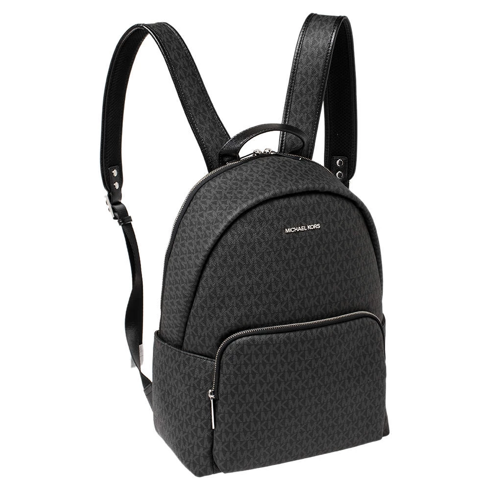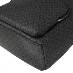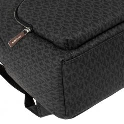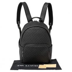 Designed with love, this Michael Kors backpack is crafted from black signature coated canvas. It comes with a fabric-lined interior that houses enough space for essentials and a zip pocket at the front. The backpack features a top handle and two shoulder straps.