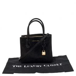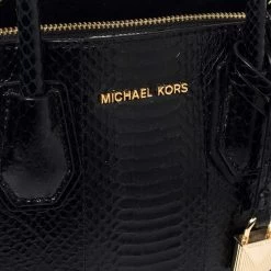 Classy and super stylish, this Mercer tote is a Michael Kors creation. It has been luxuriously crafted from exotic snakeskin, detailed with gold-tone metal, and shaped to complement all your elegant outfits. The insides are lined with Alcantara and sized to carry your necessities. The tote is complete with dual top handles and a padlock on the front. NOTE: FOR UAE CUSTOMERS ONLY