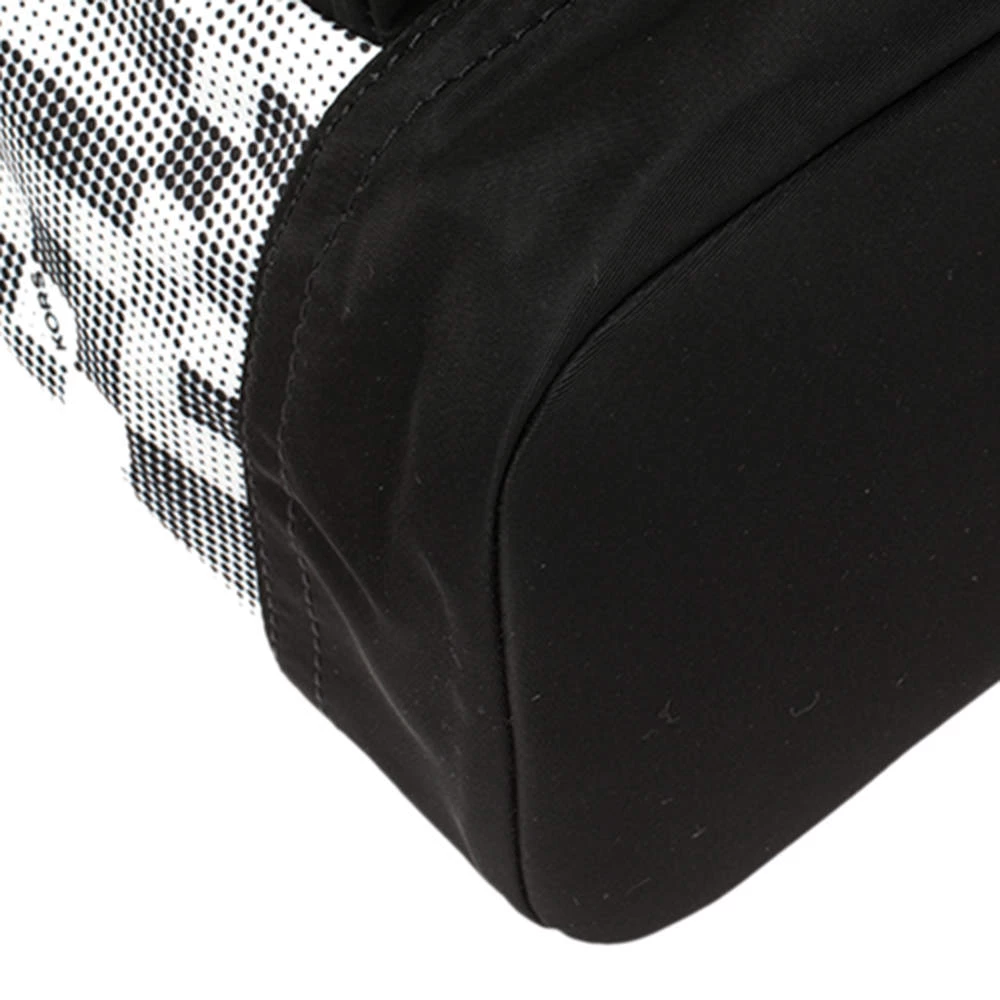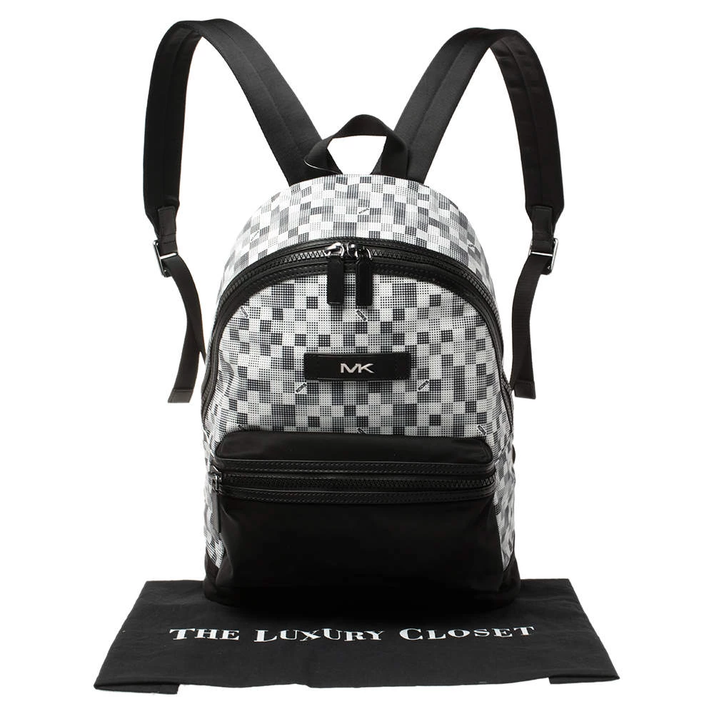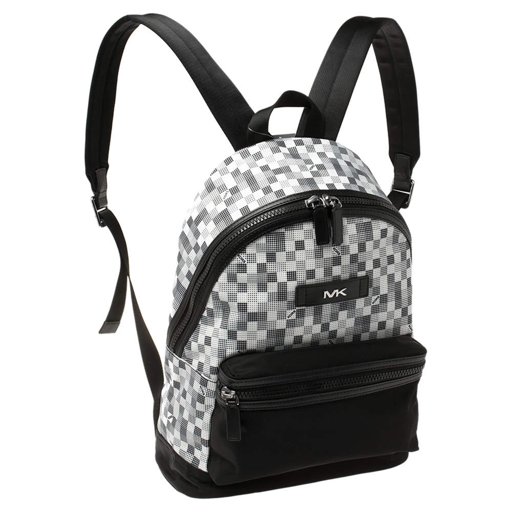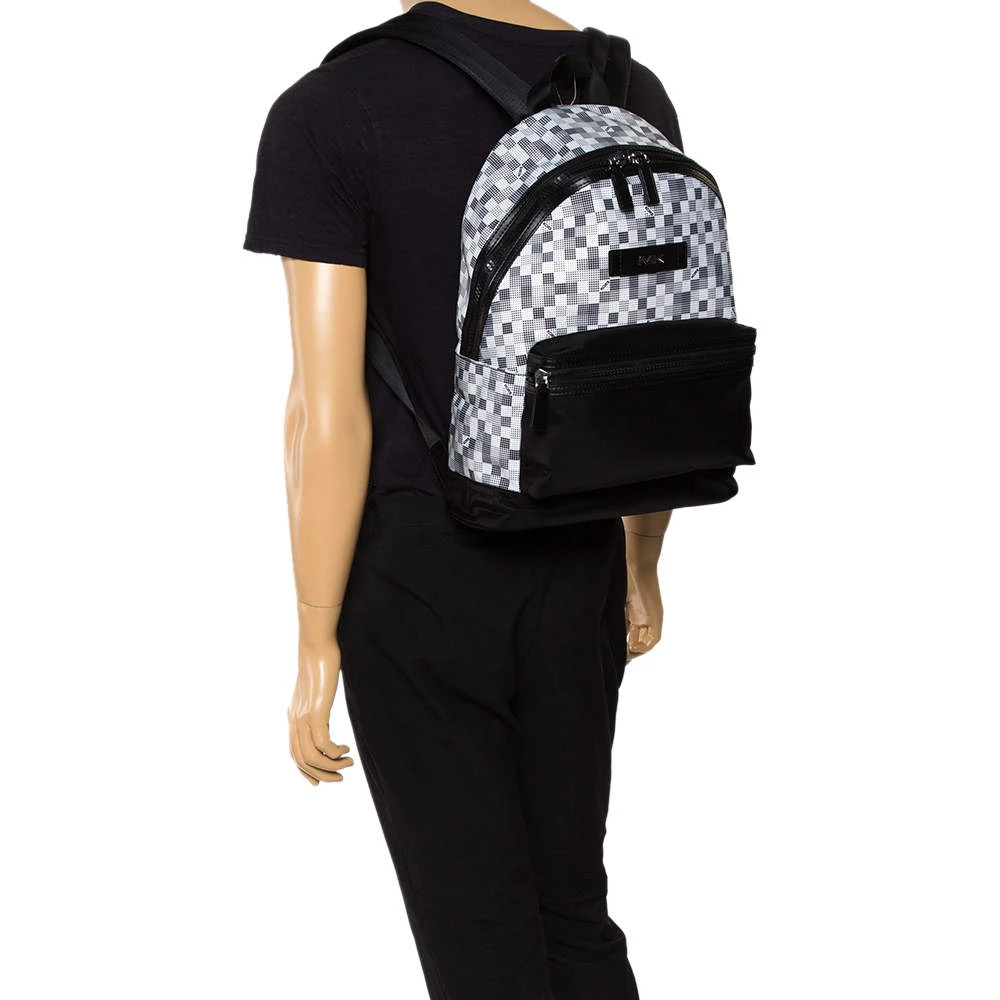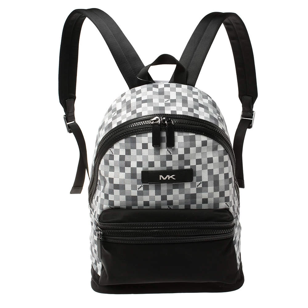 This stylish Kent backpack from Michael Kors is made from printed nylon and leather and is enhanced with a zipped pocket at the front. The bag features a top handle and two shoulder straps. It has a spacious interior that is lined with nylon. The simple design makes it ideal for everyday use.