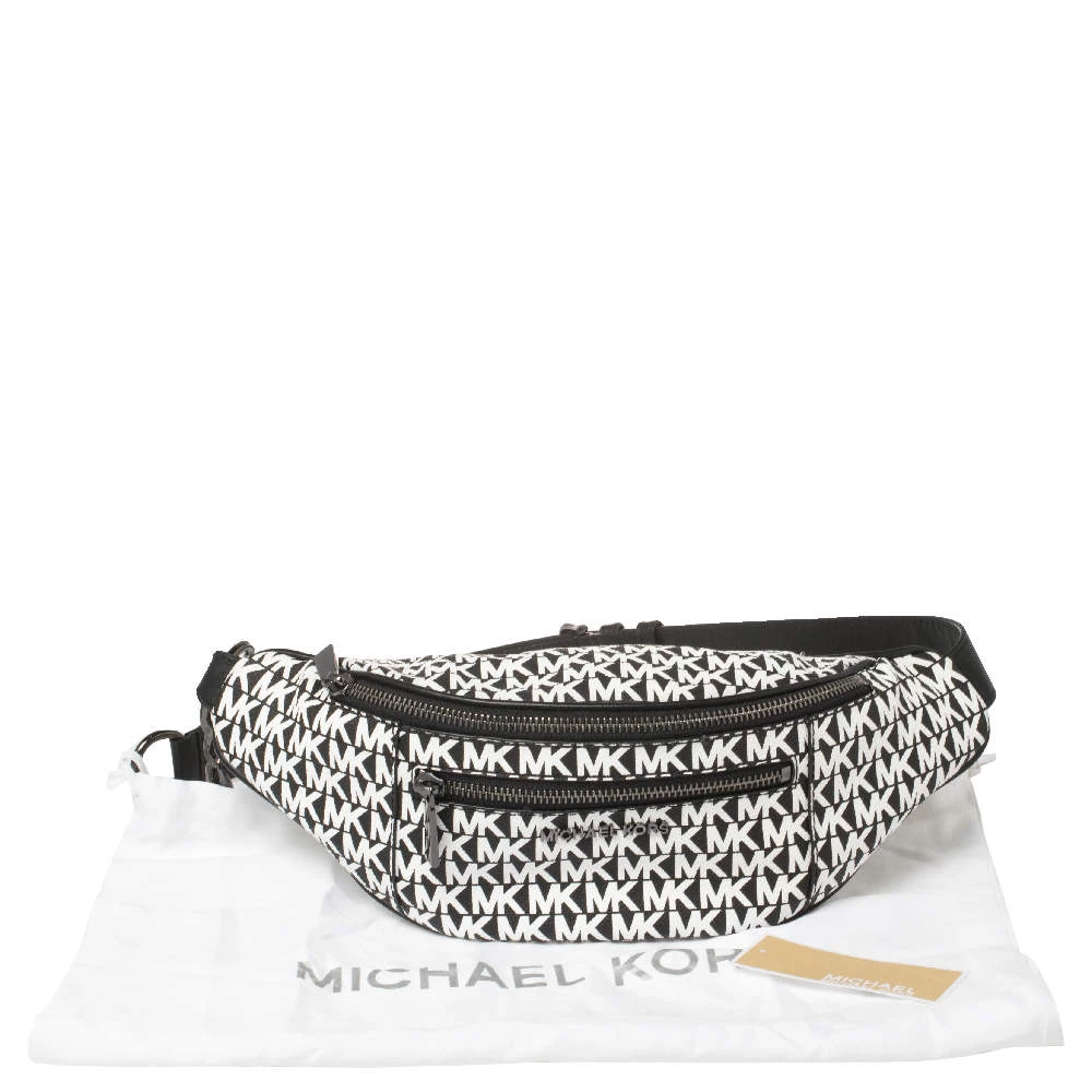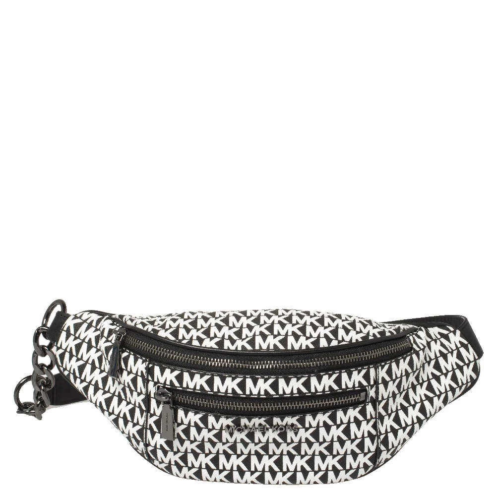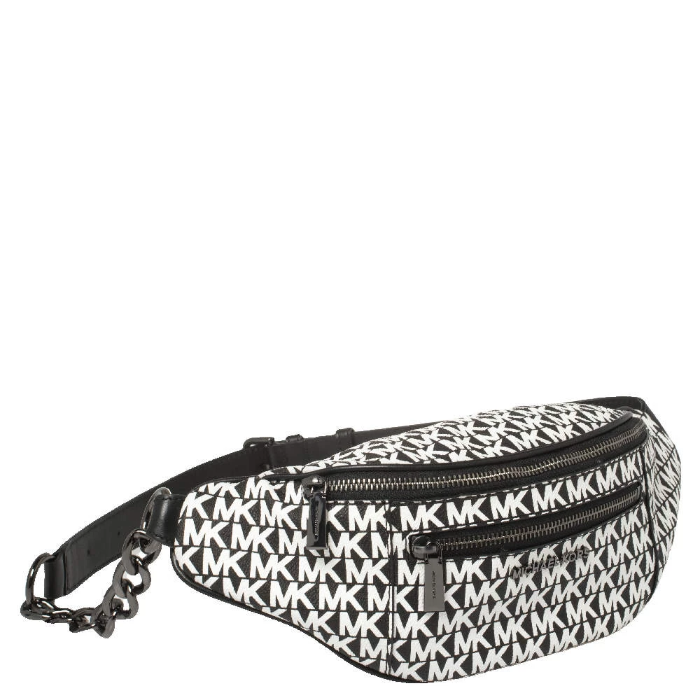 Michael Kors’ Mott Belt bag has a casual, cool design and a functional quality. Constructed using signature canvas and leather, the bag has an adjustable belt and a fabric-lined interior. It is complete with a front zip pocket.