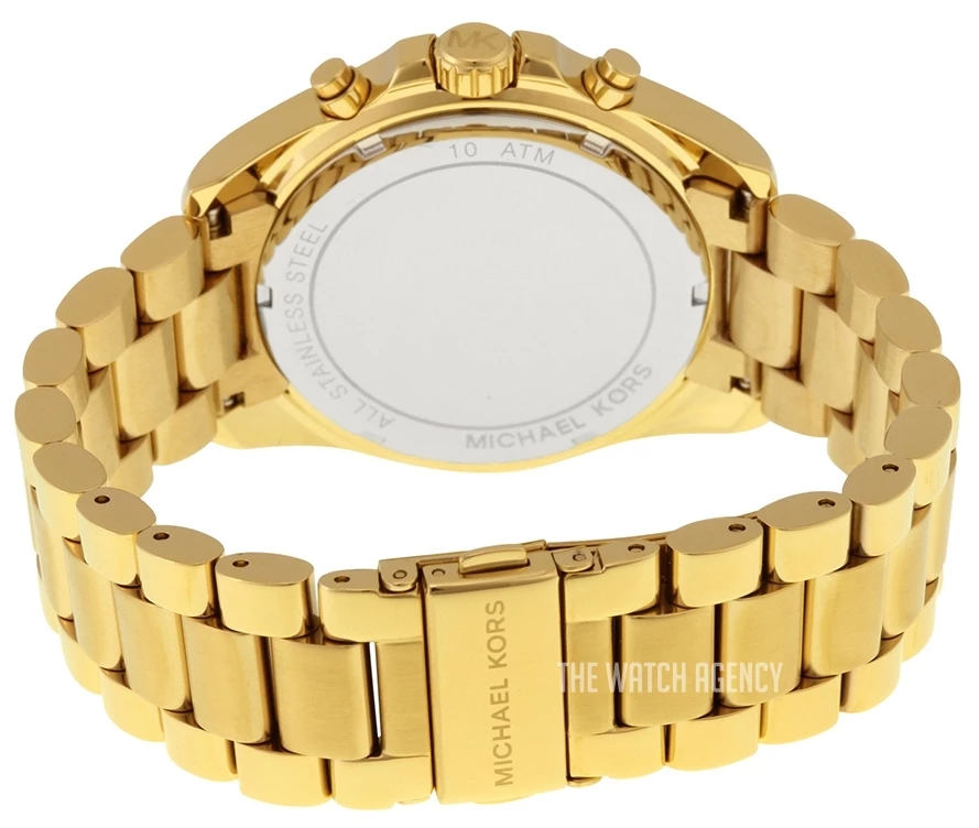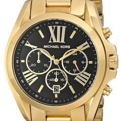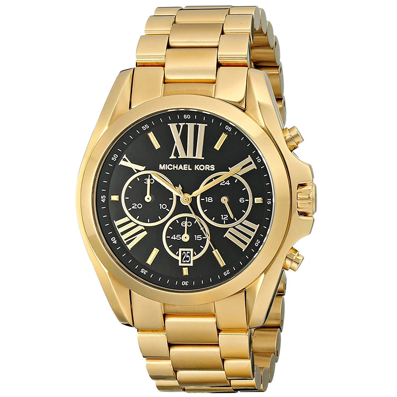 With classic and timeless yellow gold plated stainless steel linked bracelet and case, this watch is sure to stay with you for years to come. Featuring a black dial for a sleek and sleek look, this watch is completed with gold tone rimed three sub dials and hour indexes to tie in with the hues.