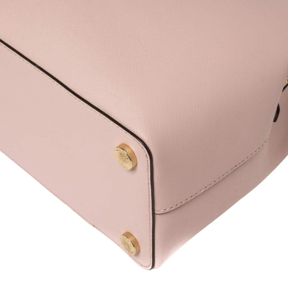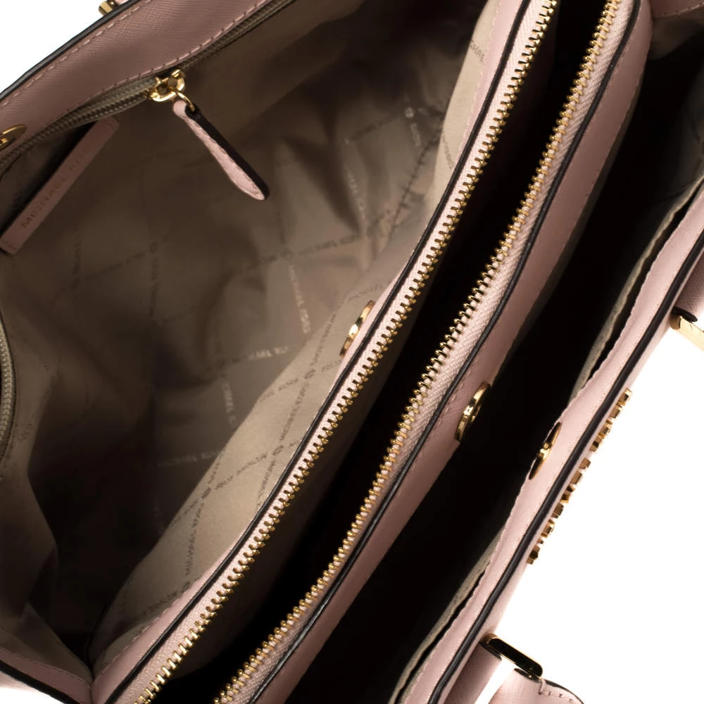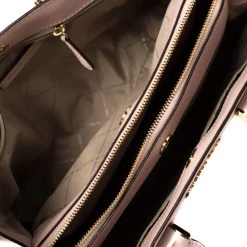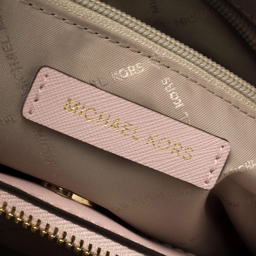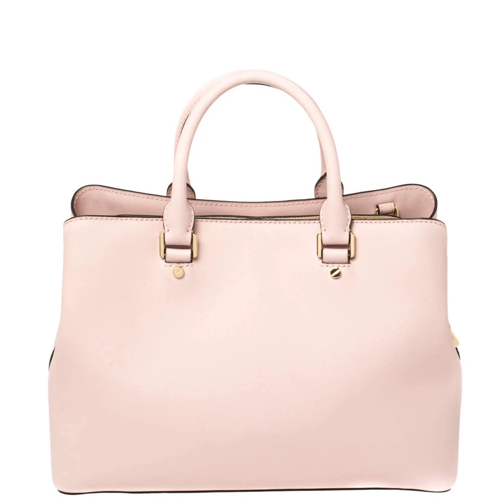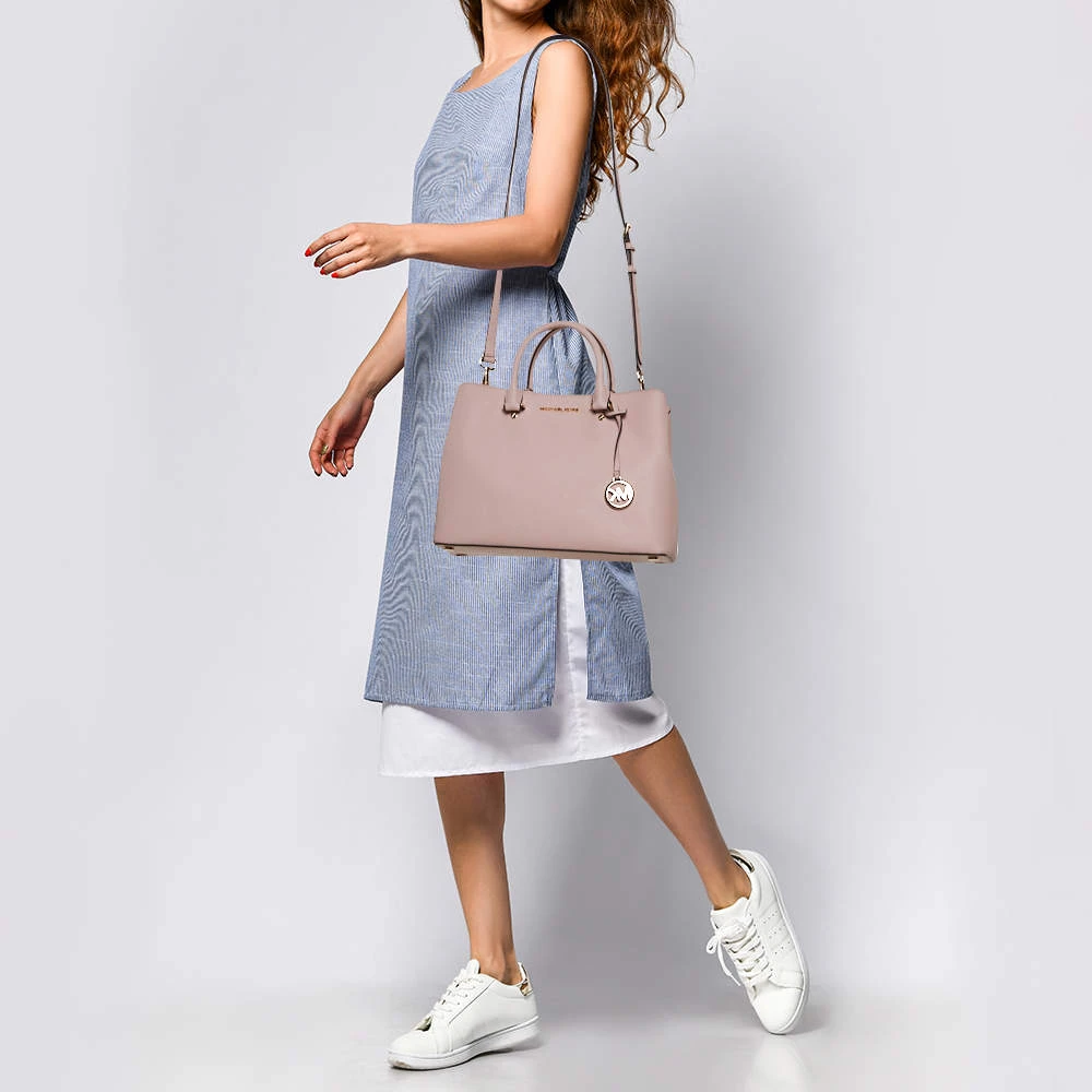 Timelessly elegant and stylish, Michael Kors collections capture the effortless, nonchalant finesse of the modern woman. Crafted from leather in a pink hue, this chic Savannah satchel features compartments secured with a top zip fastening. The sleek, understated silhouette is punctuated with gold-tone hardware- a logo charm and a logo plaque to the front.