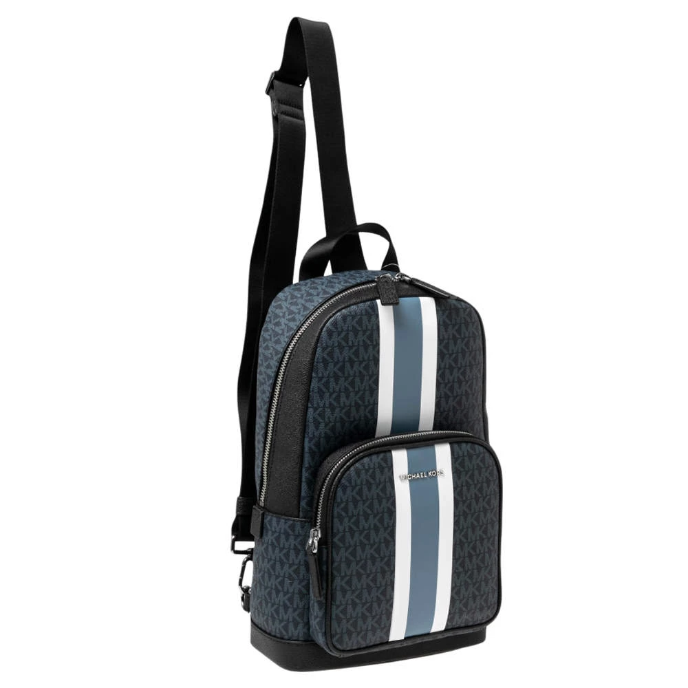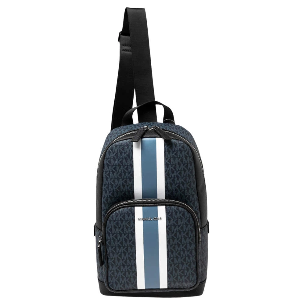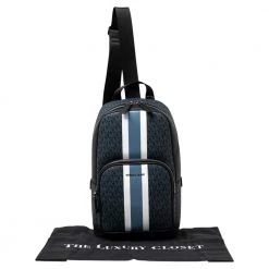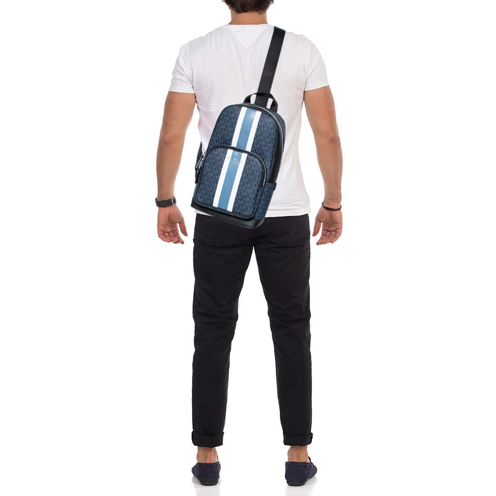 This Cooper Commuter sling backpack from the House of Michael Kors is as stunning as it looks! It is made from blue-black Signature coated canvas on the exterior and comes with silver-toned fittings. Its sturdy shape is complemented by a shoulder strap. Carry this backpack and be at complete ease!