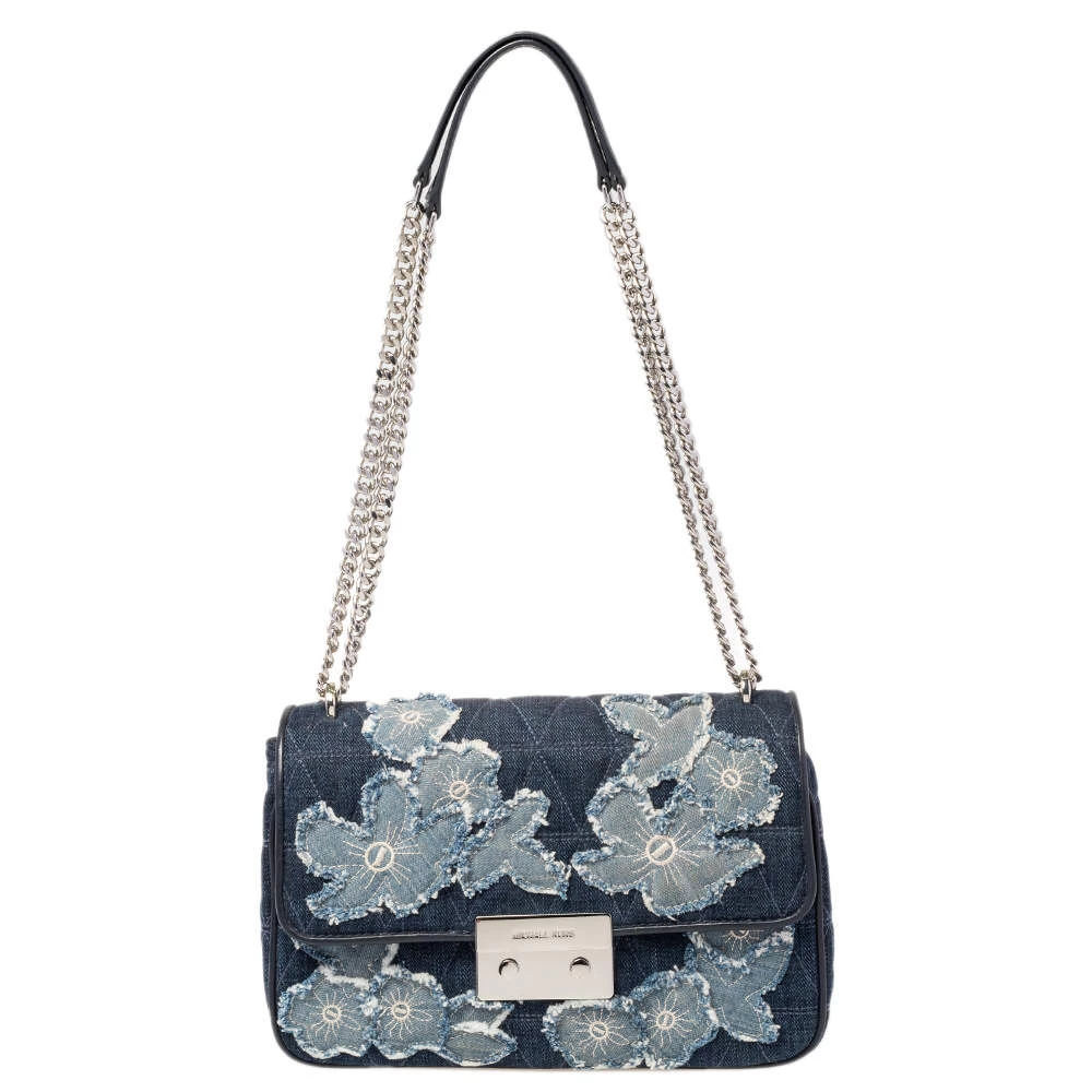 You will enjoy parading this red Sloan bag from Michael Kors. Made from denim, it features shoulder handles, floral patches, and a metal lock on the flap. The bag is complete with a fabric-lined interior sized to easily hold all your daily essentials.