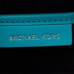 A beautiful designer shoulder bag to carry your essentials this season. Designed by Michael Kors, this bag in blue leather is enhanced with a drawstring detail and silver-tone hardware. It features a well-lined interior, two handles, and a shoulder strap.