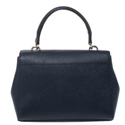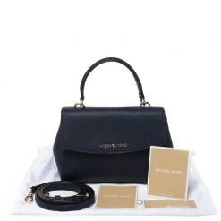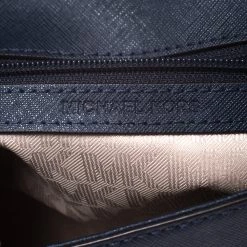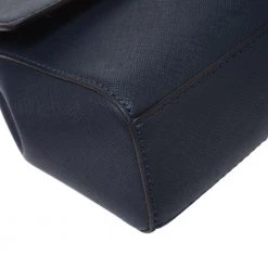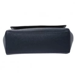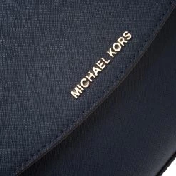 This blue crossbody bag comes from the fashion house of Michael Kors. Crafted from leather, it features a durable fabric interior that ensures to house your lipstick, wallet and other essentials. Designed with a flap closure and a top handle, it flaunts a gold-tone brand logo at the front. It is accompanied by a detachable shoulder strap.