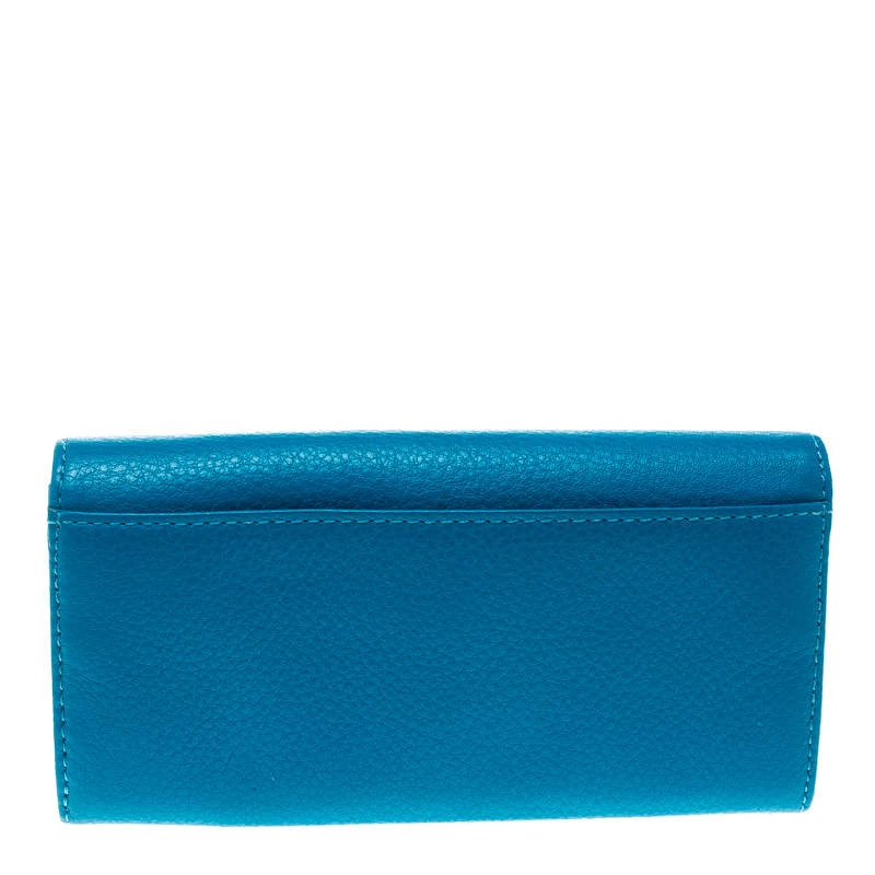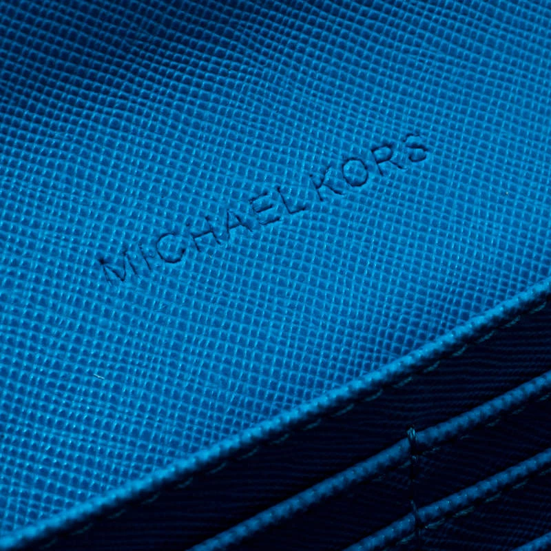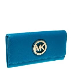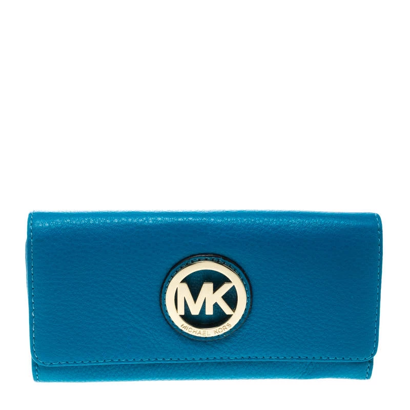 This gorgeous wallet from the house of Michael Kors is crafted from leather and carries a lovely blue exterior. Styled with a logo-adorned flap, the wallet is equipped with multiple slots and a zip compartment to carry your necessities. This wallet is definitely chic and posh.