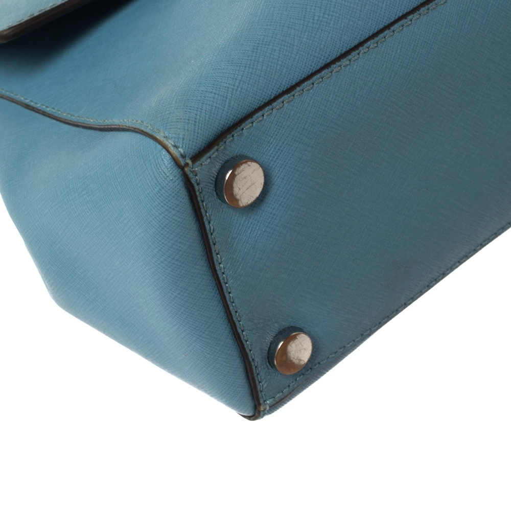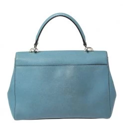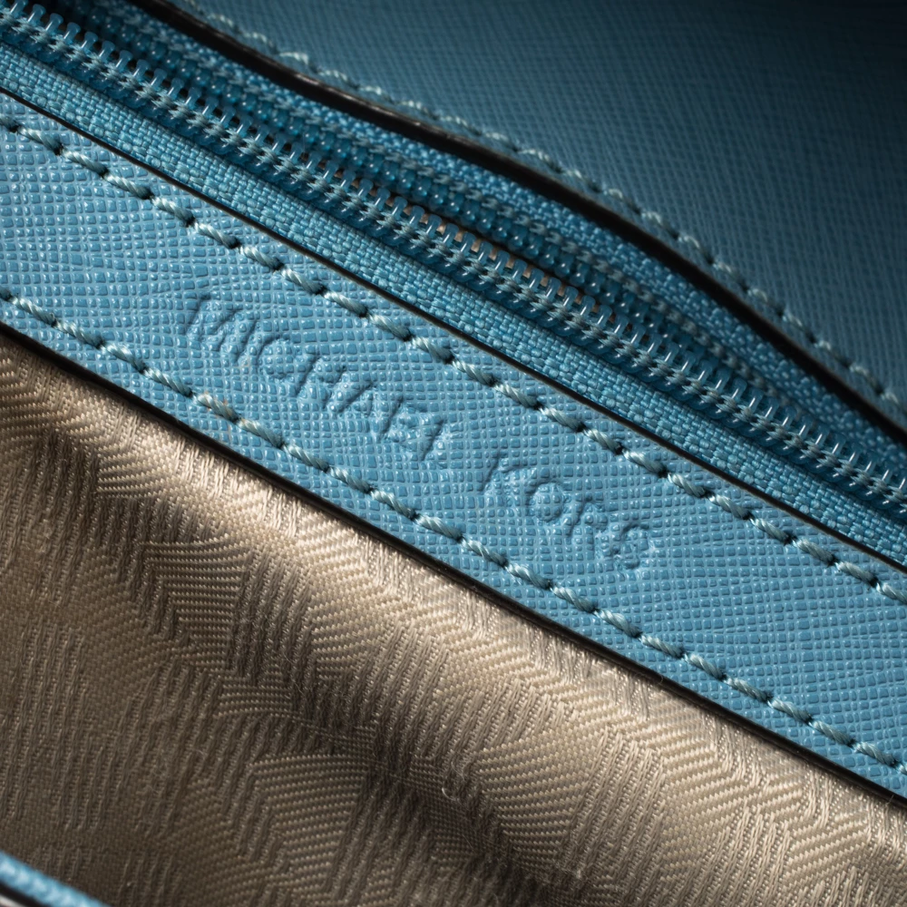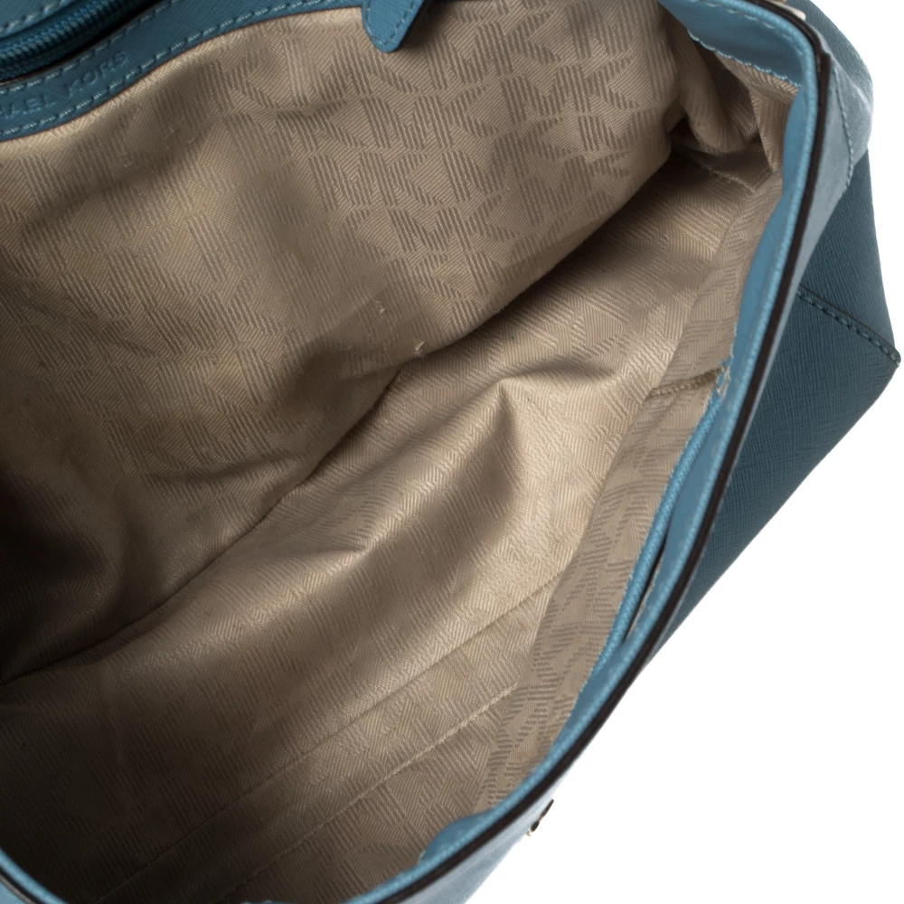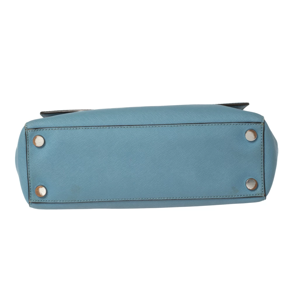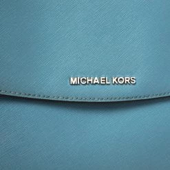 This blue-colored bag comes from the fashion house of Michael Kors. Crafted from leather, it features a durable fabric interior that ensures to house your lipsticks, wallet, and other essentials. Designed with a flap closure, it flaunts a silver-tone brand logo adorning the front and is complete with a single top handle and a detachable shoulder strap.