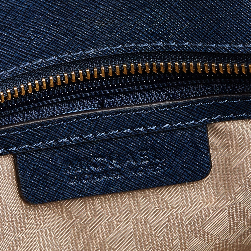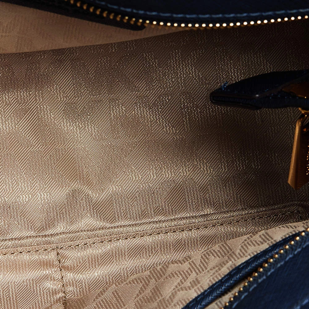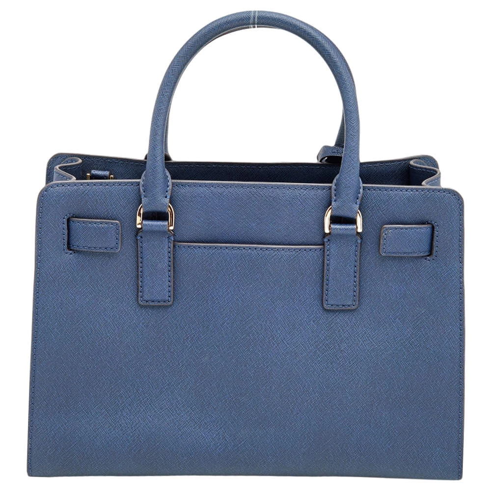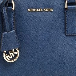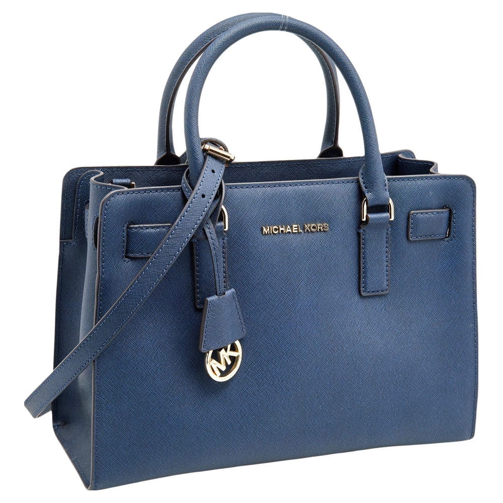 This elegant Michael Kors Dillon bag deserves to be in your closet. High in appeal, the bag features dual handles, a shoulder strap, and an MK charm. It’s crafted from blue leather and the fabric-lined interior houses pockets.