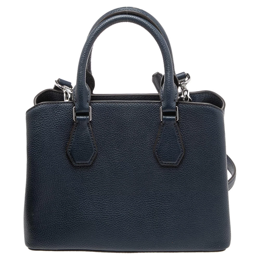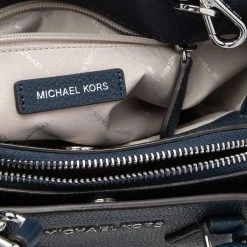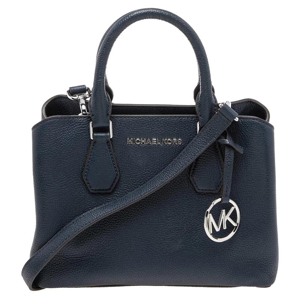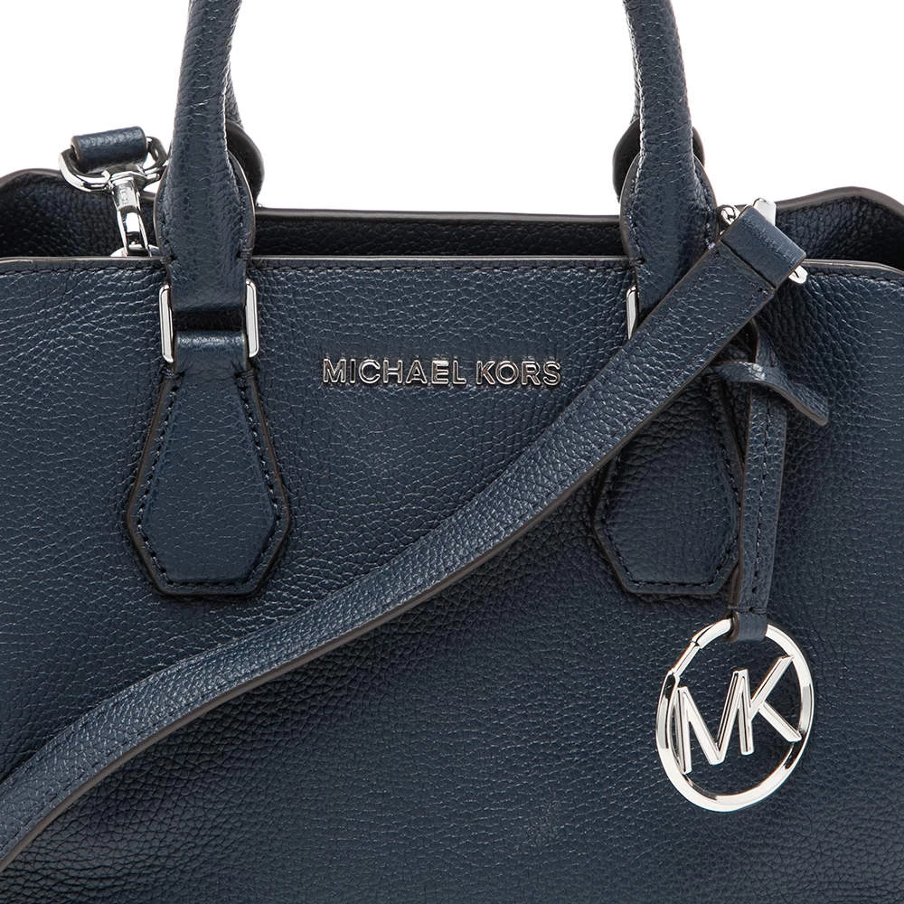 The Savannah satchel from Michael Kors is made into a lovely shape. It is crafted with leather and enhanced with silver-tone hardware. Equipped with two top handles, a detachable shoulder strap, and a nylon-lined interior, this bag is for women on-the-go.