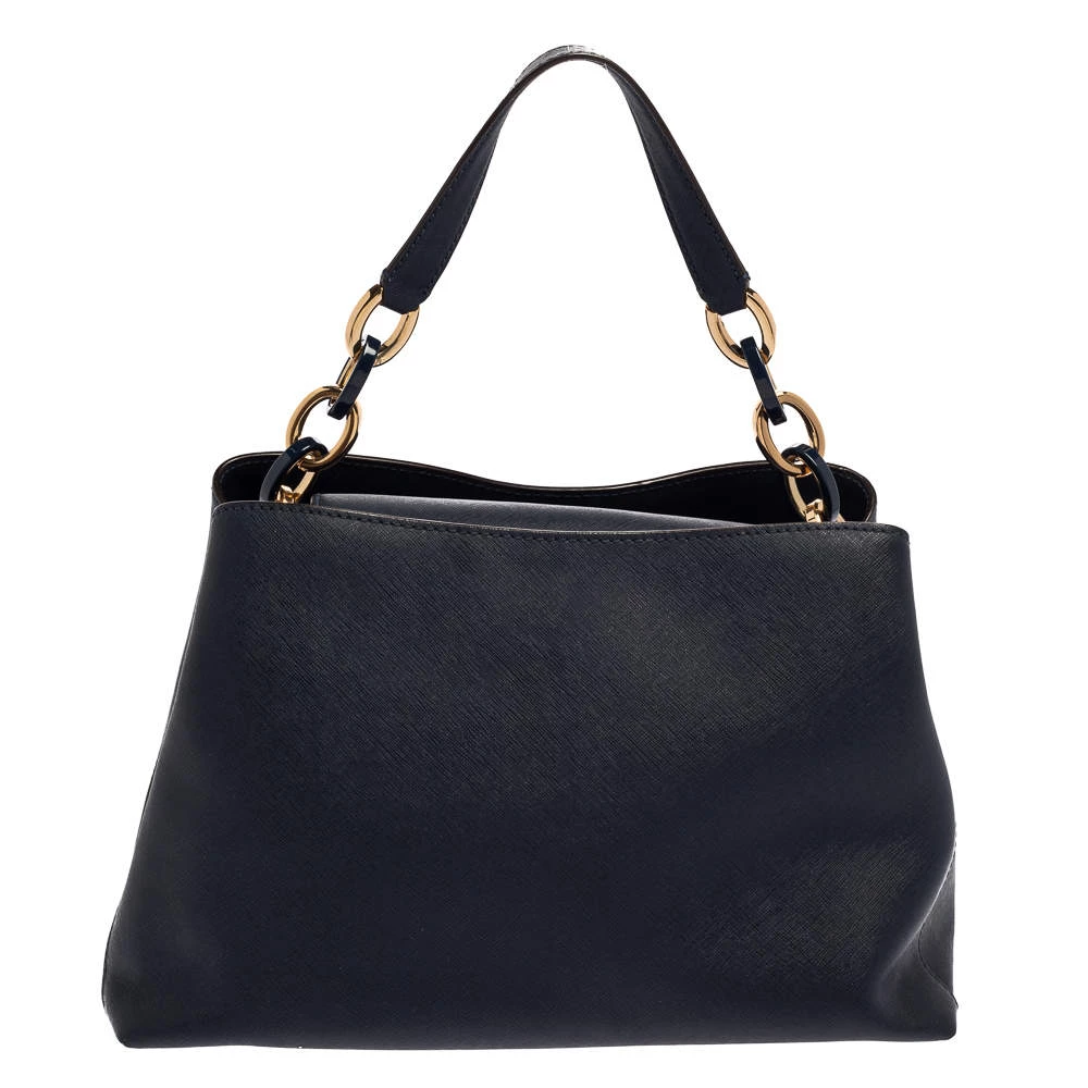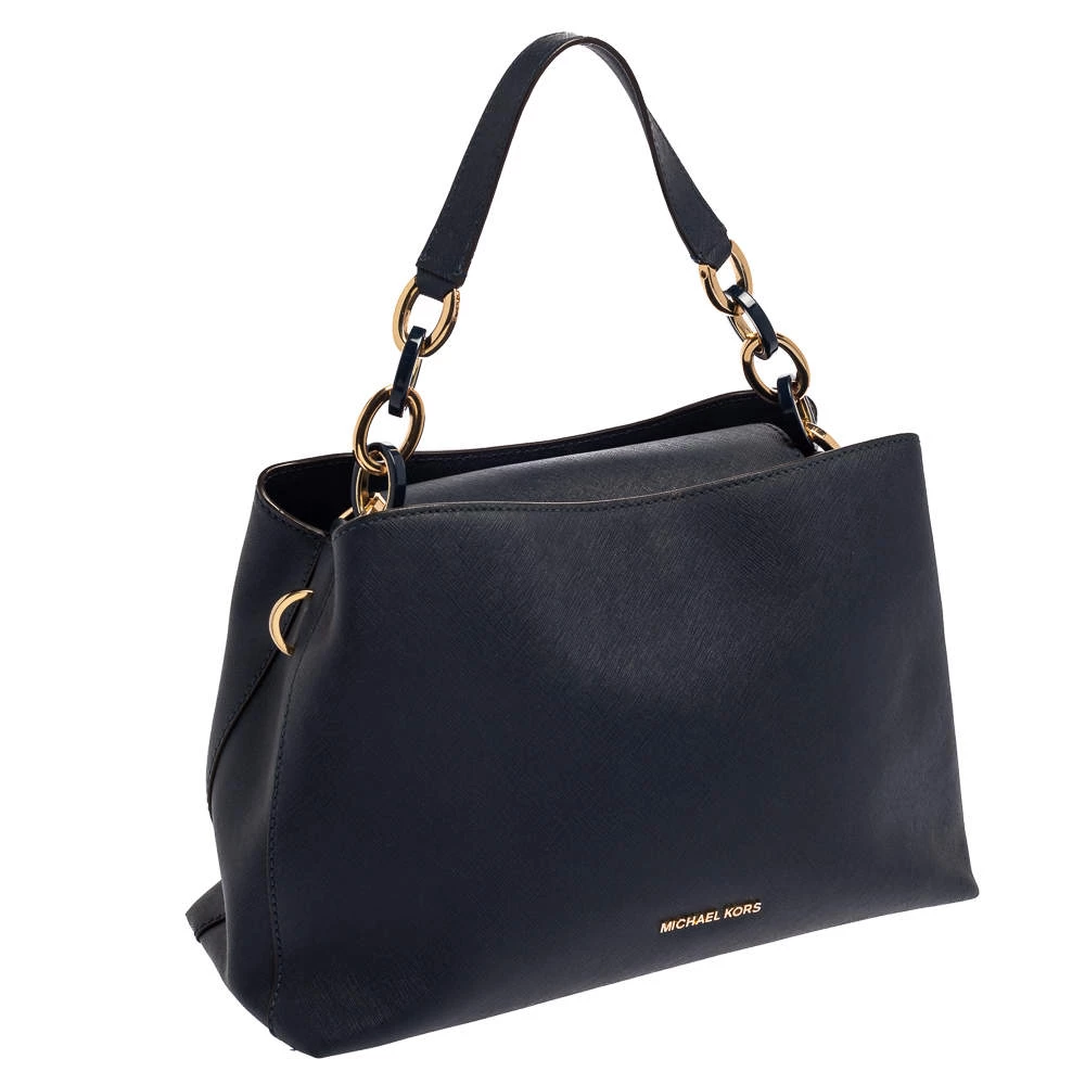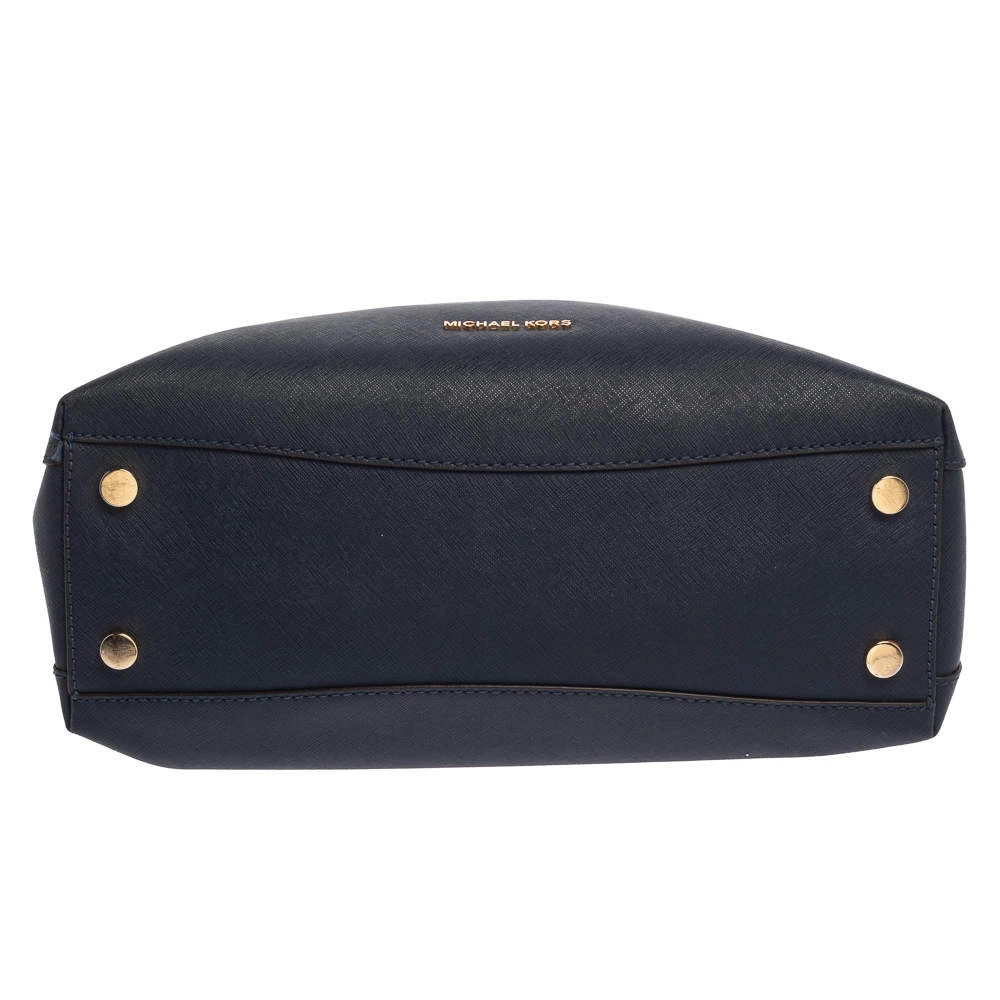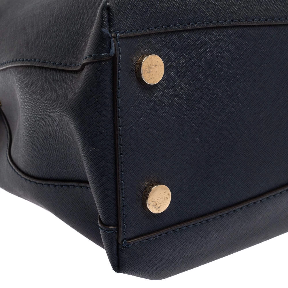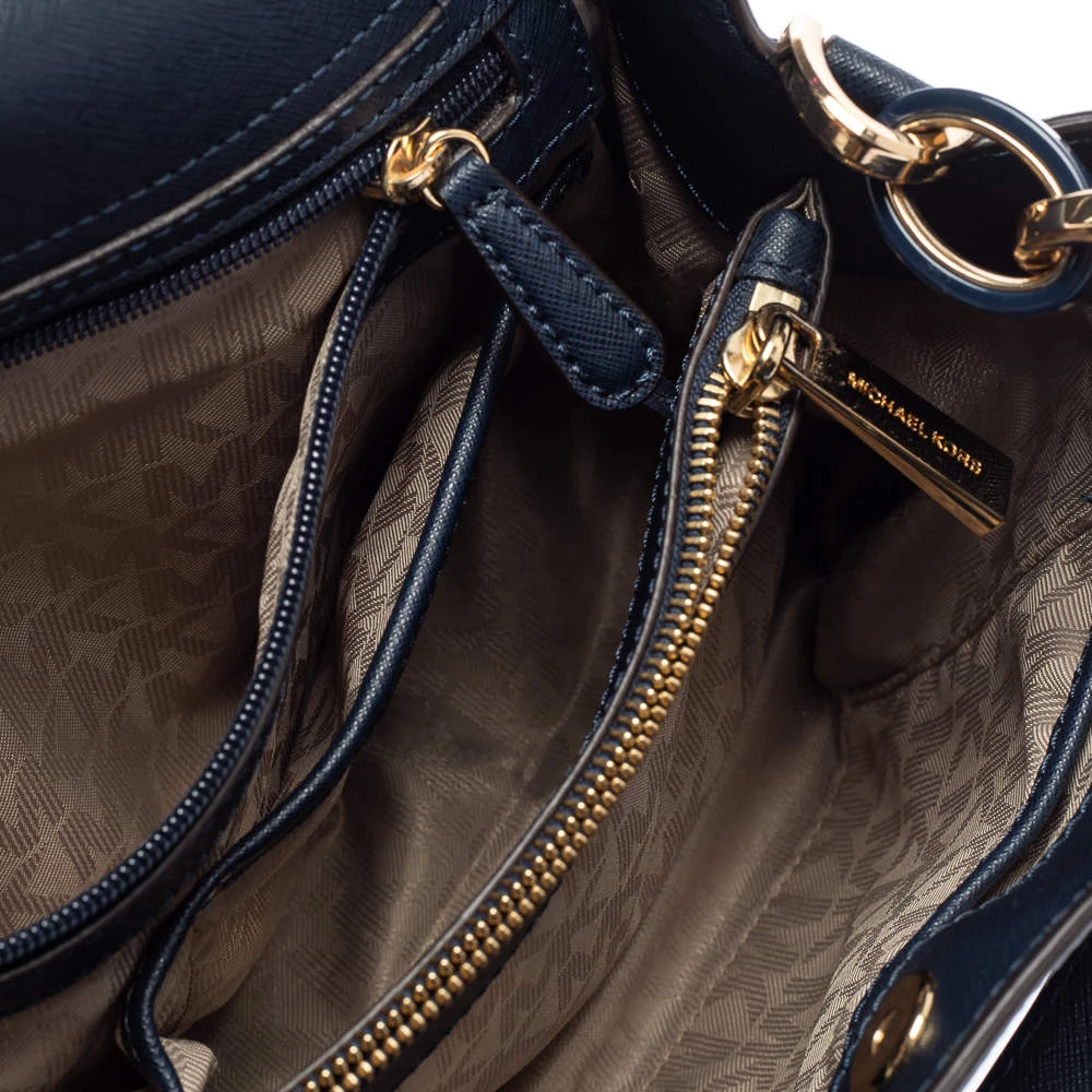 Elevate your style with this gorgeous Raven tote by Michael Kors. Crafted from leather, this blue tote features a single top handle, protective metal feet at the bottom, and spacious fabric-lined compartments. This beauty is totally worth the splurge!