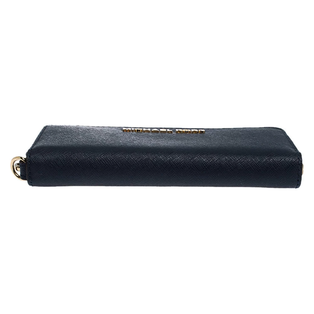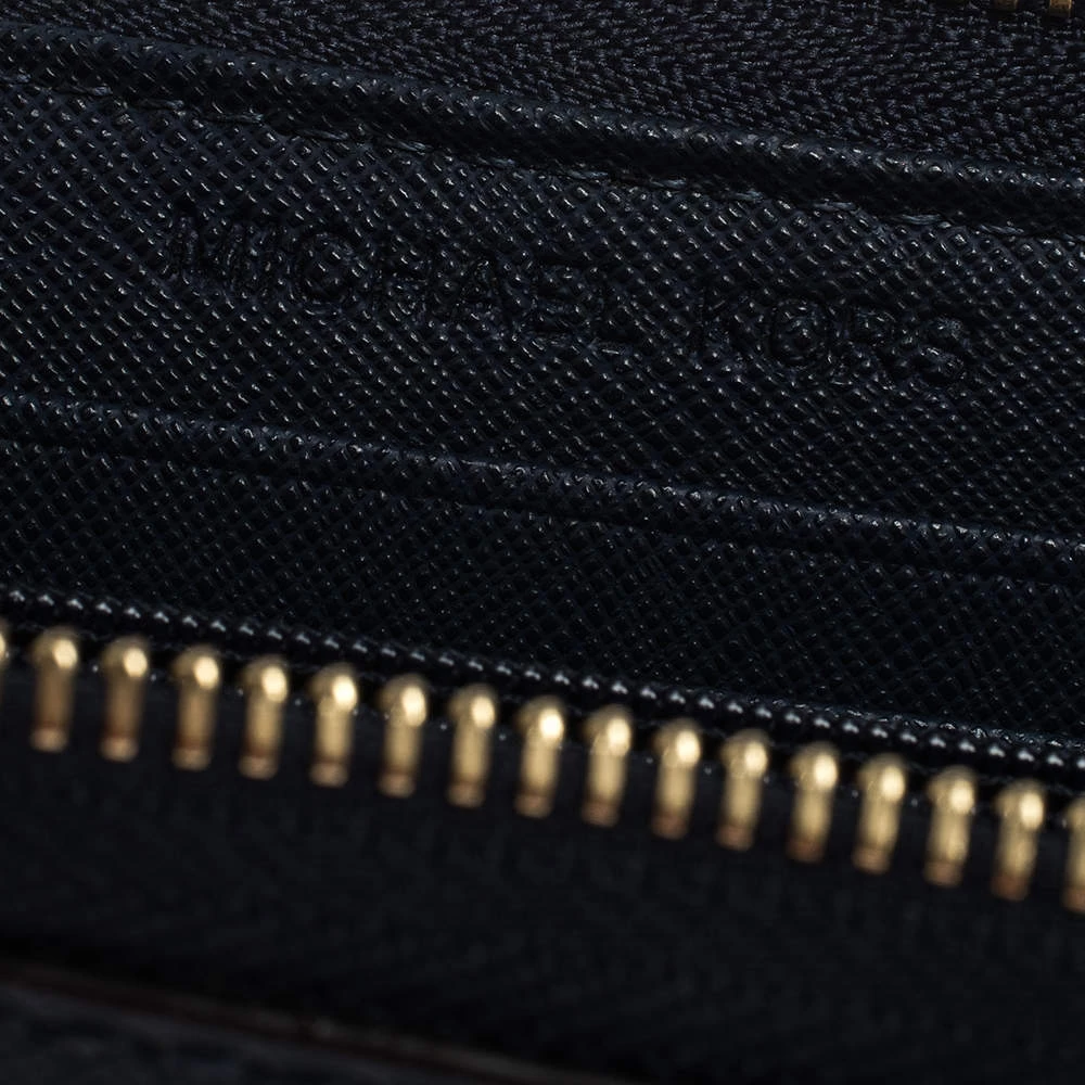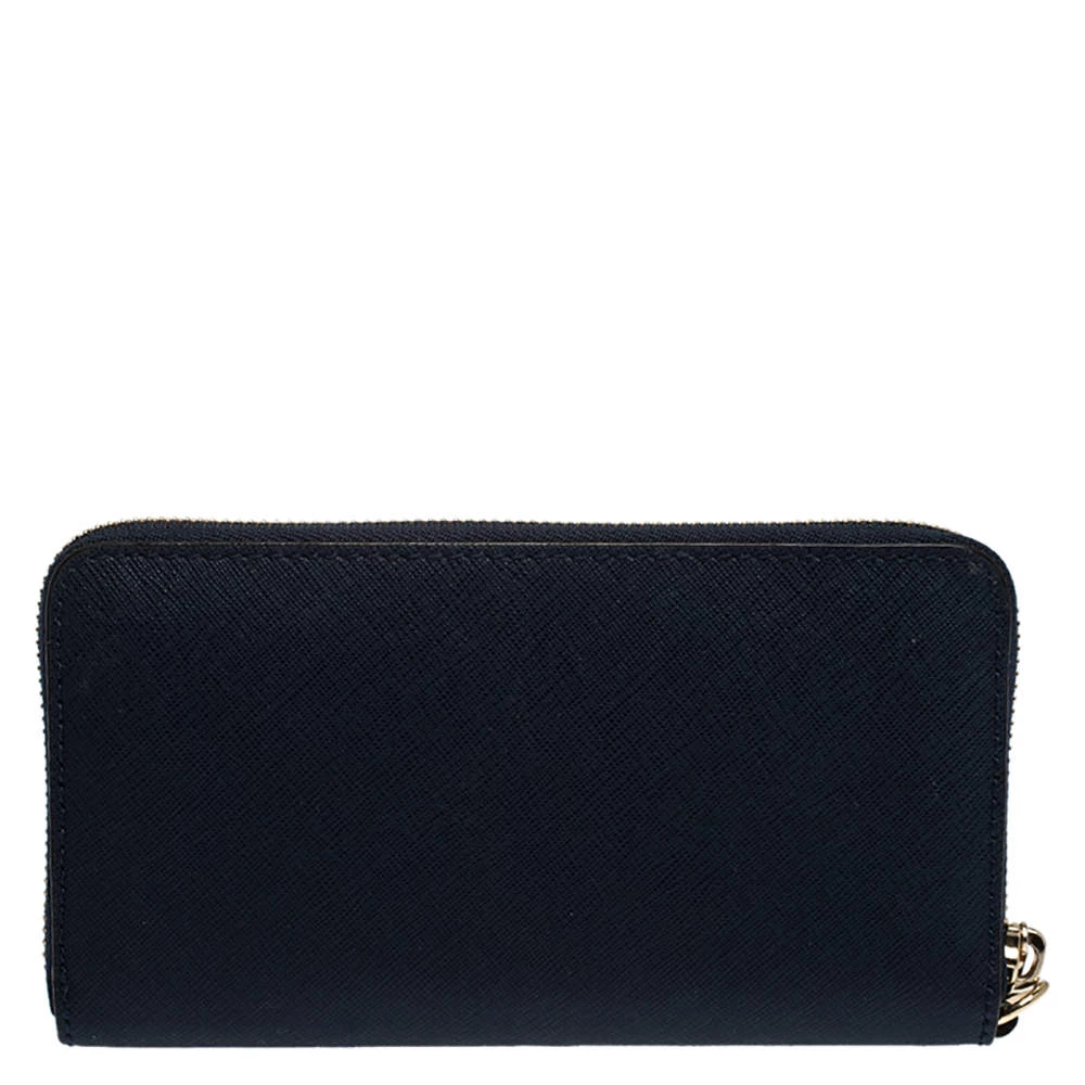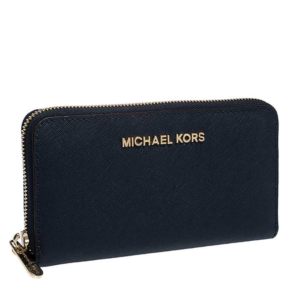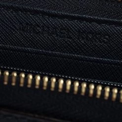 A compact and practical option to store your handy essentials, this Michael Kors wallet is crafted from leather. It has a zip-around closure and is equipped with card slots and a zip pocket to keep things organised. It showcases the brand logo in gold-tone on the exterior and a wristlet.