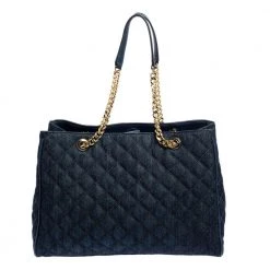 With this tote, Michael Kors introduces a stylish piece of accessory for the urbane woman. Crafted from quality denim, it comes in a lovely shade of blue. The exterior is made beautiful with a quilted pattern. This Susannah tote is held by dual straps and comes with an interior with enough space for all your essentials. It is finished with a gold-tone MK charm at the front.