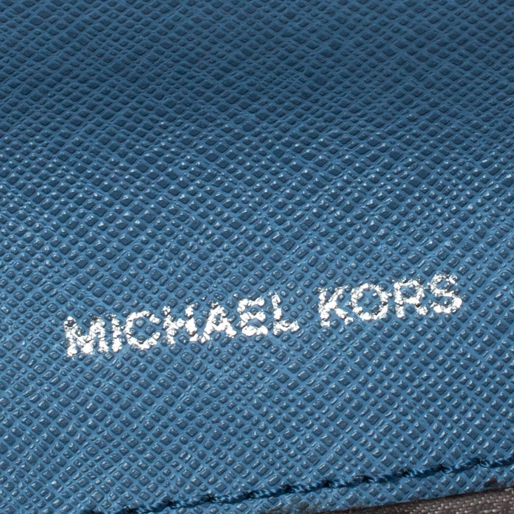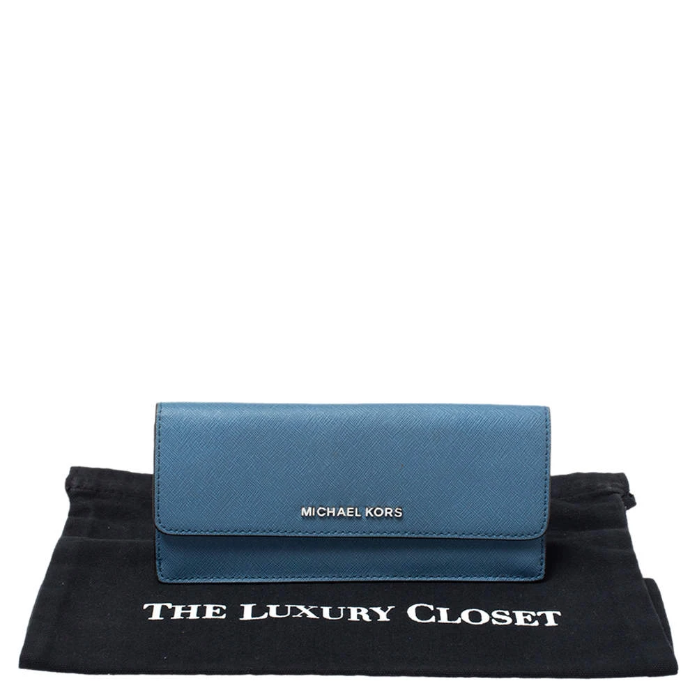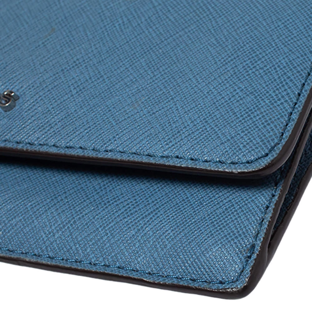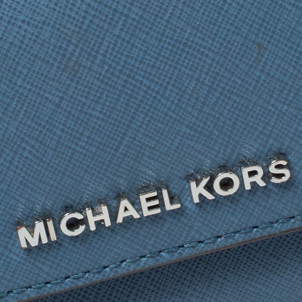 This wallet is a suave creation from the extraordinary house of Michael Kors. A rich Saffiano leather design is the characteristic feature of this wallet. A subtle yet catchy blue shade characterizes this flap wallet.
