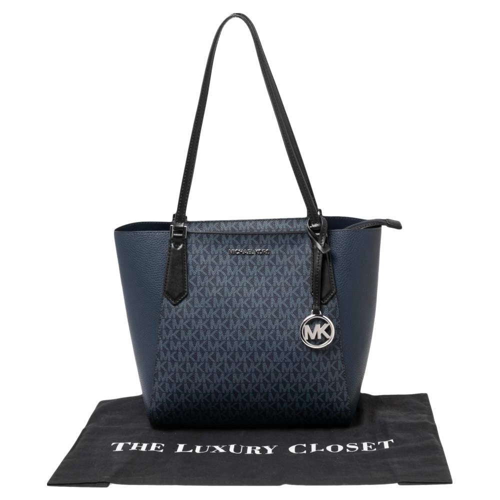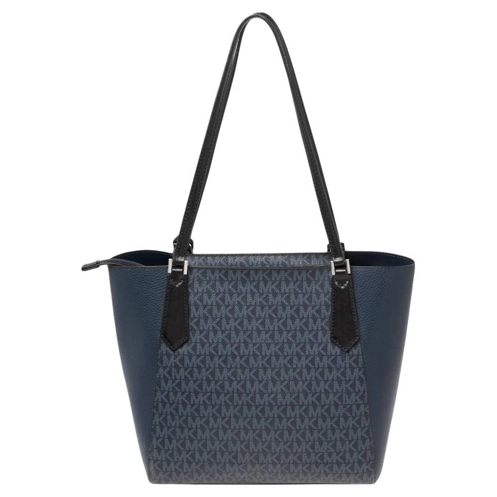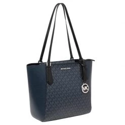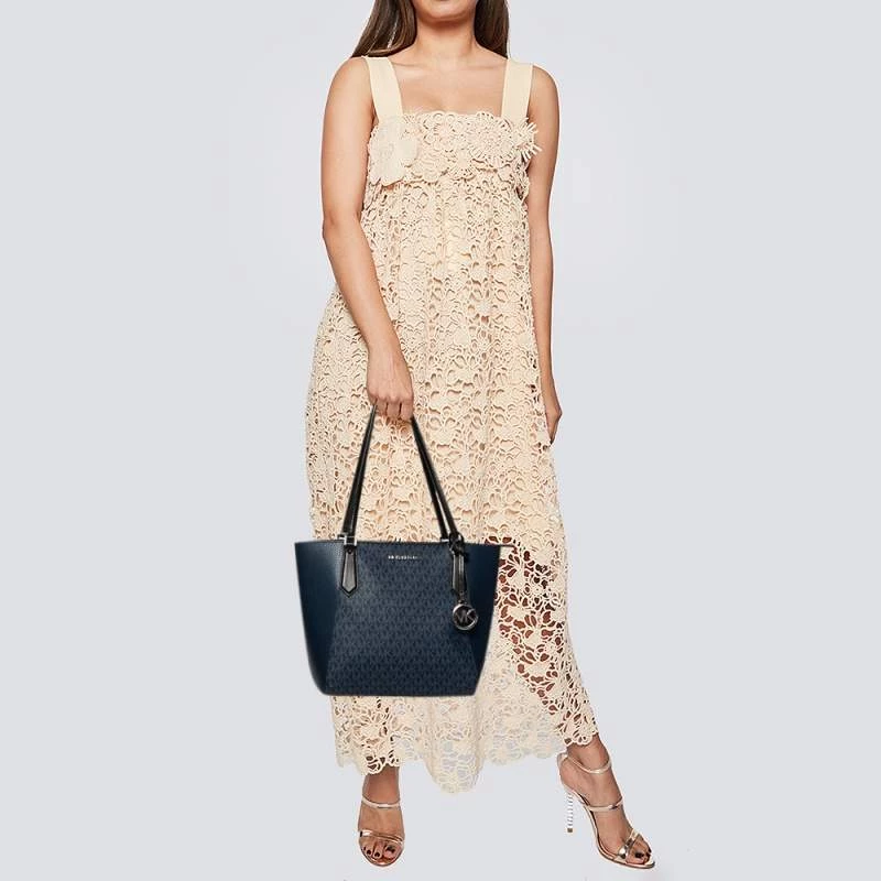 This Kimberly tote from Michael Kors is a great choice of an everyday bag. It is made of signature canvas and leather. This bag is lined with leather and completed with twin top handles and an MK charm in silver-tone metal to the front