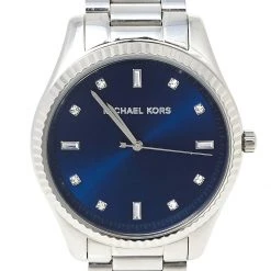 Awaiting to be yours is this stunner of a watch from Michael Kors! Crafted with beauty using stainless steel, the quartz watch is elevated by a textured bezel. It brings a gorgeous blue dial set with hour markers and three hands. Finished perfectly with a water resistance of 50 meters, this watch is surely going to look great on your wrist.